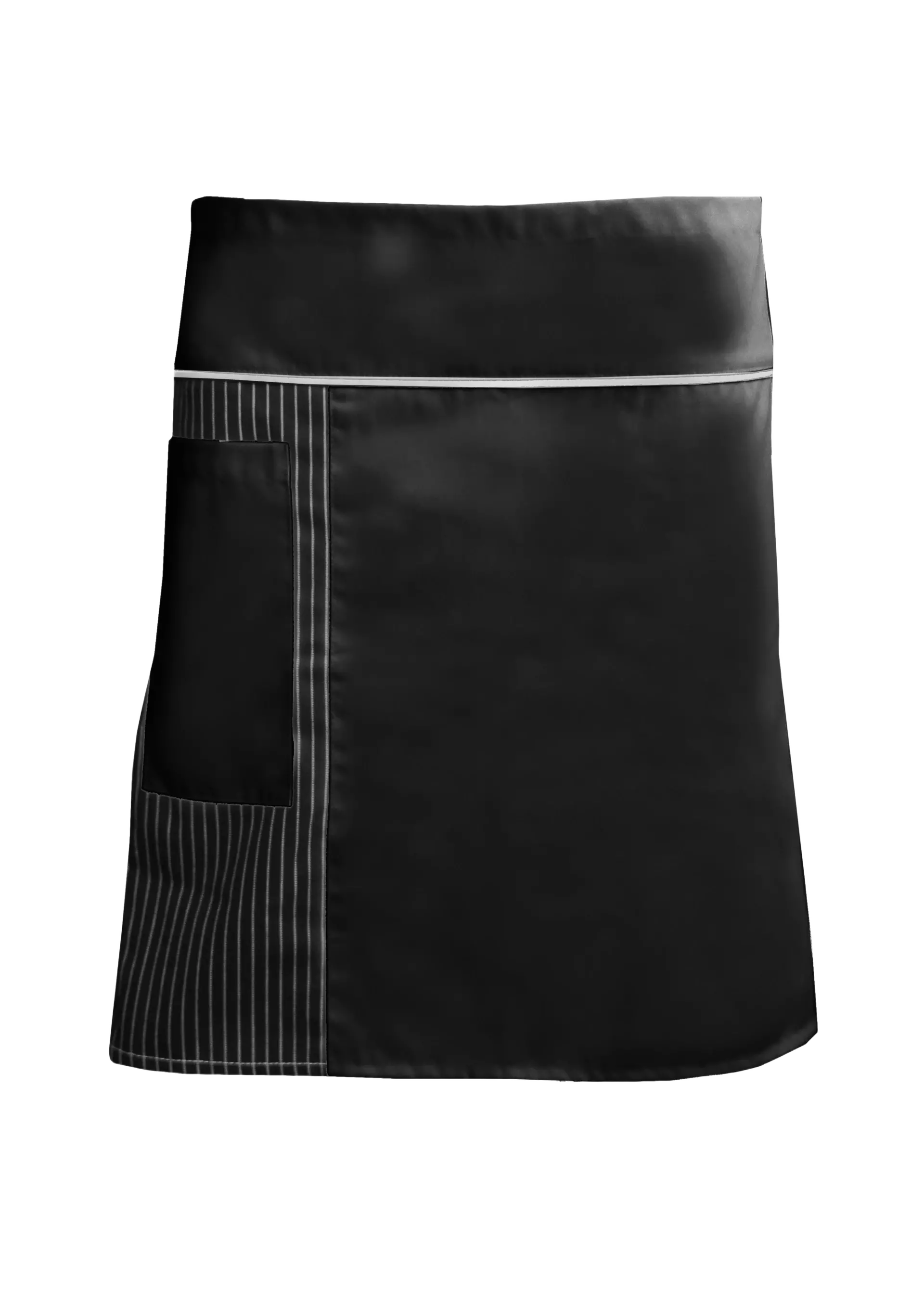 Material: 65% polyester, 35% cotton, 215g/m 2 Care instructions: industrial laundering 75 °C, machine wash 60°C Apron short ADRIATIC is made of Tencate Tecawork™ fabric which is suitable for industrial laundering at 75°C Description: waist tightening, one pen pocket Size: one size Color: white, black G33008/2 MADE IN EUROPE Barcode: 3858892000571 Unite of measure: pcs Packaging/minimum order quantity: 1 Full box quantity: 50