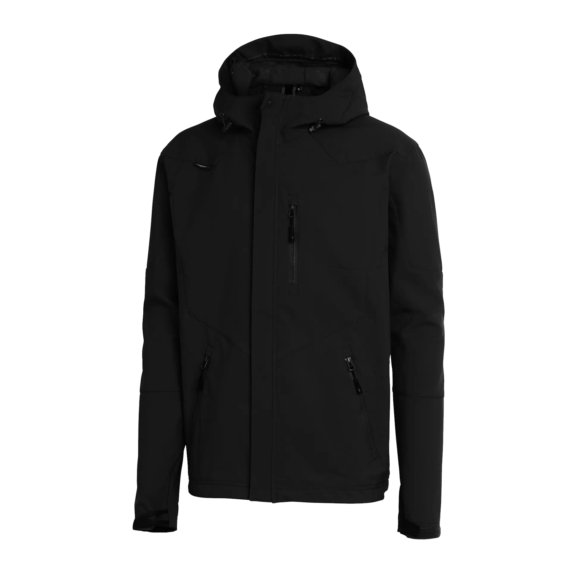 This windproof and water-repellent shell jacket features soft polyester construction with Nanotex surface treatment for optimal weather protection. The jacket combines practical functionality with versatile design, making it suitable for both work and leisure activities. With a fixed hood and multiple pockets, it provides essential protection and convenience for outdoor activities where weather resistance and freedom of movement are required.