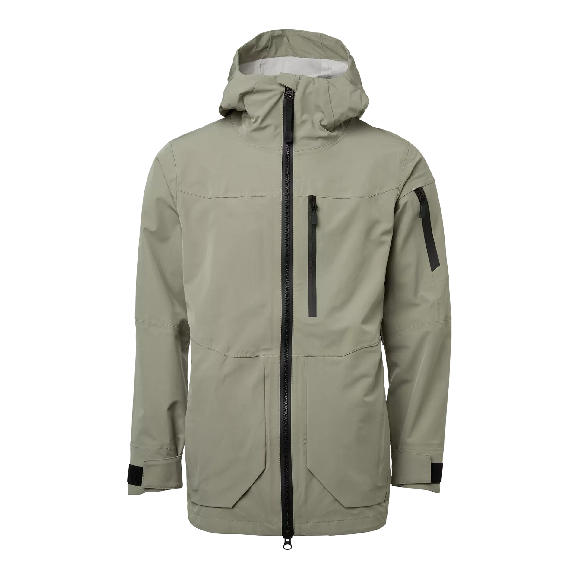 This robust ski and snowboard jacket features a longer cut and articulated fit designed for maximum functionality and protection during freeride activities. Constructed from GRS certified recycled polyester with spandex for flexibility, it offers reliable water resistance and breathability for extreme mountain conditions. The jacket includes five strategically placed pockets for essential storage and is built with durable materials focused on performance and longevity.