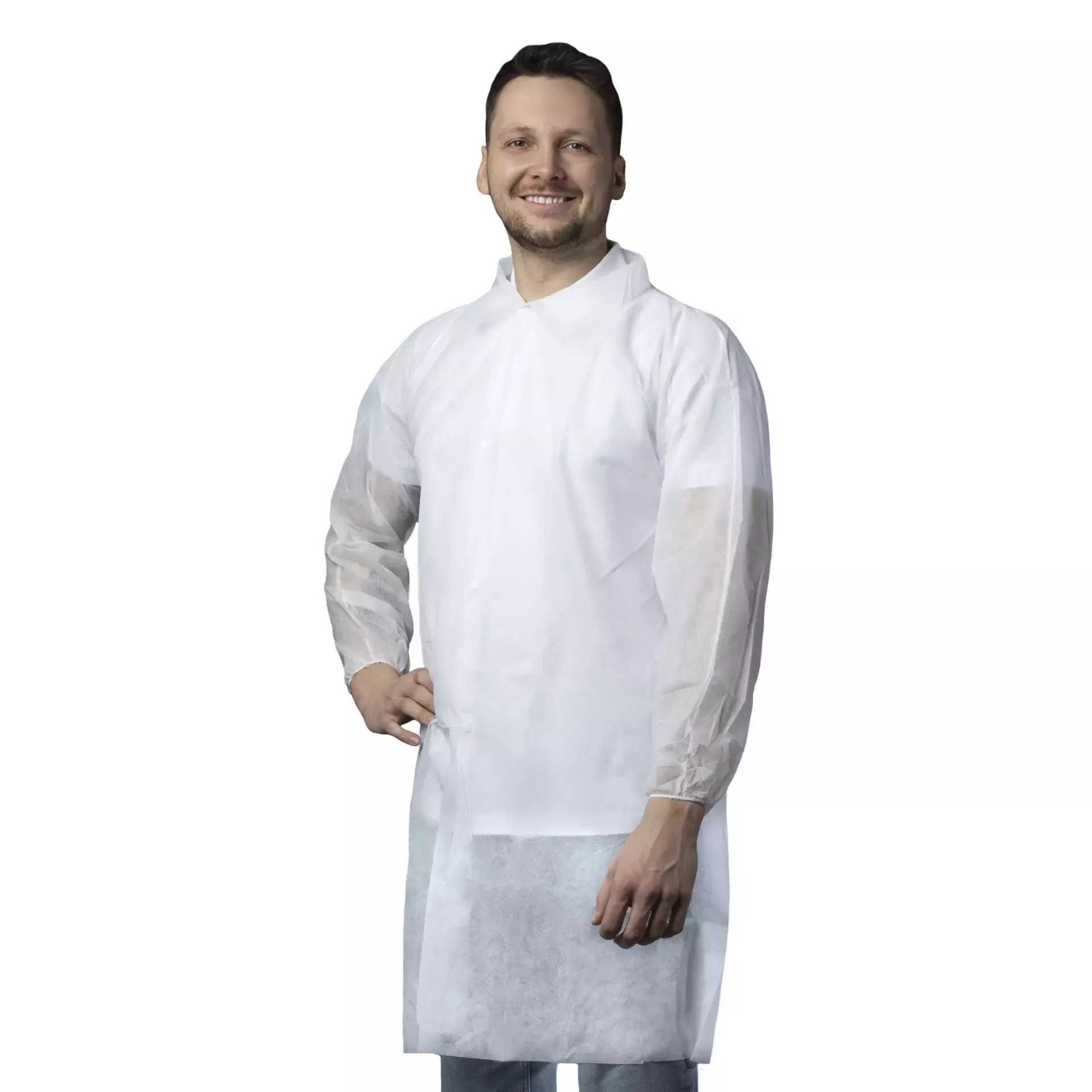 PP Visitor Coat with Zipper, White, 50 pieces
