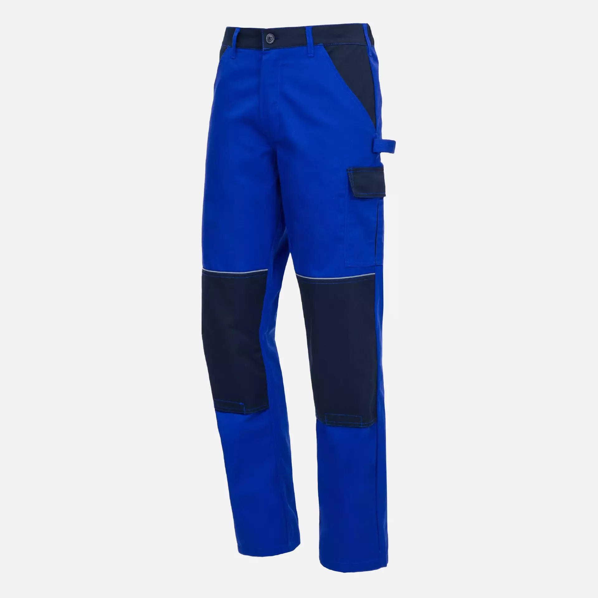 Professional work trousers designed for optimal comfort and functionality in demanding work environments. These lightweight, breathable trousers feature strategic reinforcements at high-wear points and enhanced visibility elements for safety. The combination of practical storage solutions and ergonomic design elements ensures both utility and comfort during extended wear.