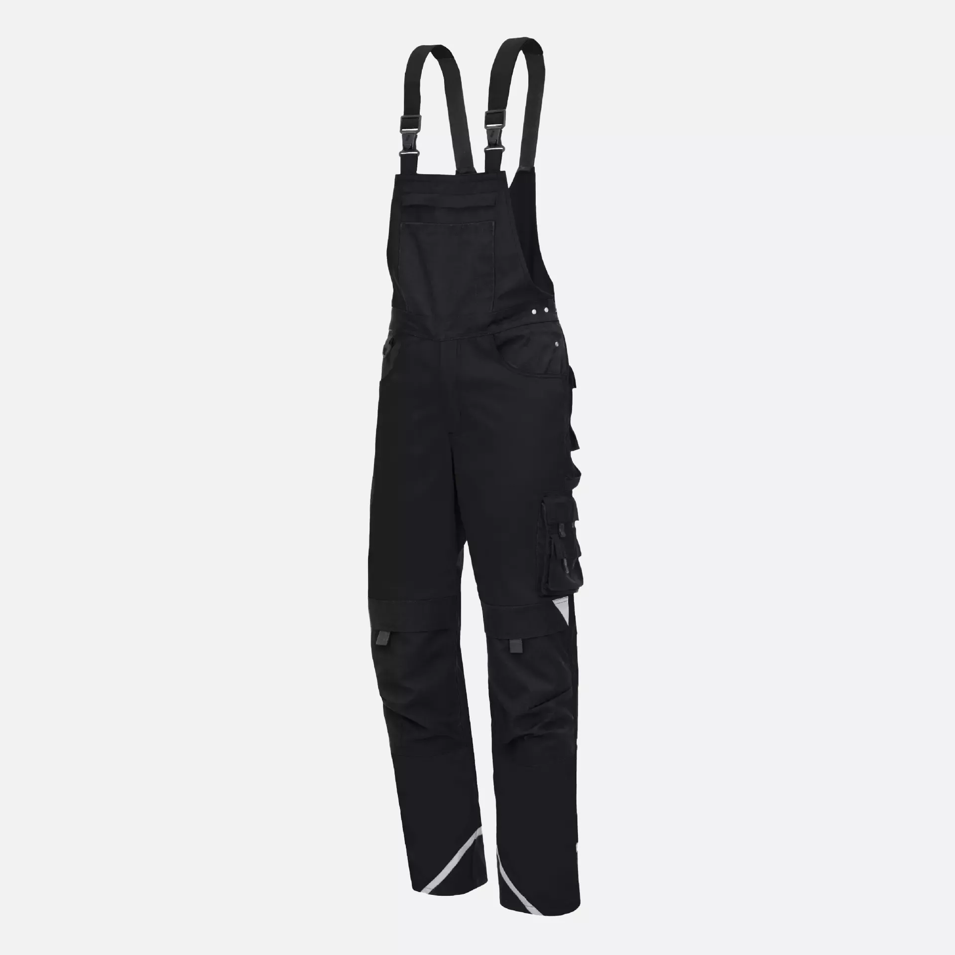 Professional-grade bib pants designed for demanding work environments, featuring a breathable 280 g/sqm material construction with reinforced stress points. These pants combine durability with comfort through elastic waist design and triple-stitched seams. Enhanced with reflective elements and multiple specialized pockets, they meet STANDARD 100 by OEKO-TEX® requirements for textile safety.