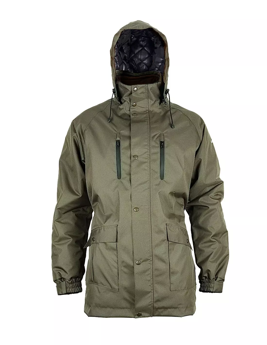 - Zip fastening covered with a snap-button placket for enhanced weather protection