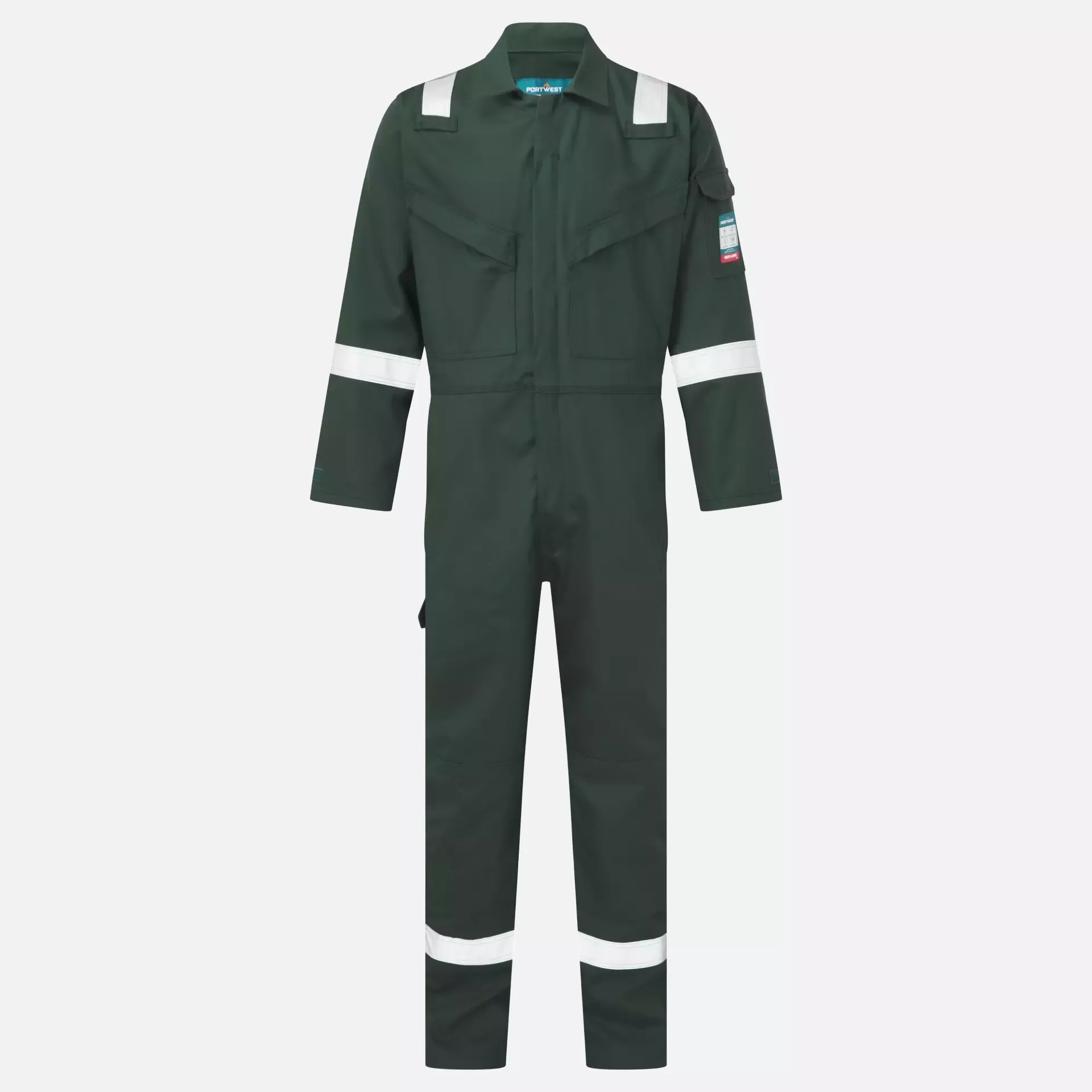 This flame-retardant coverall is engineered for offshore industry demands, featuring innovative FR fabric with double-stitched high visibility reflective tape for enhanced safety. The garment provides comprehensive protection against radiant, convective and contact heat, while offering Class 2 welding protection and 40+ UPF rating to block 98% of UV rays. With triple-stitched seams, 10 strategically placed pockets, and specialized features like two-tier knee pad pockets and action back design, this coverall delivers durability and functionality for hazardous work environments.