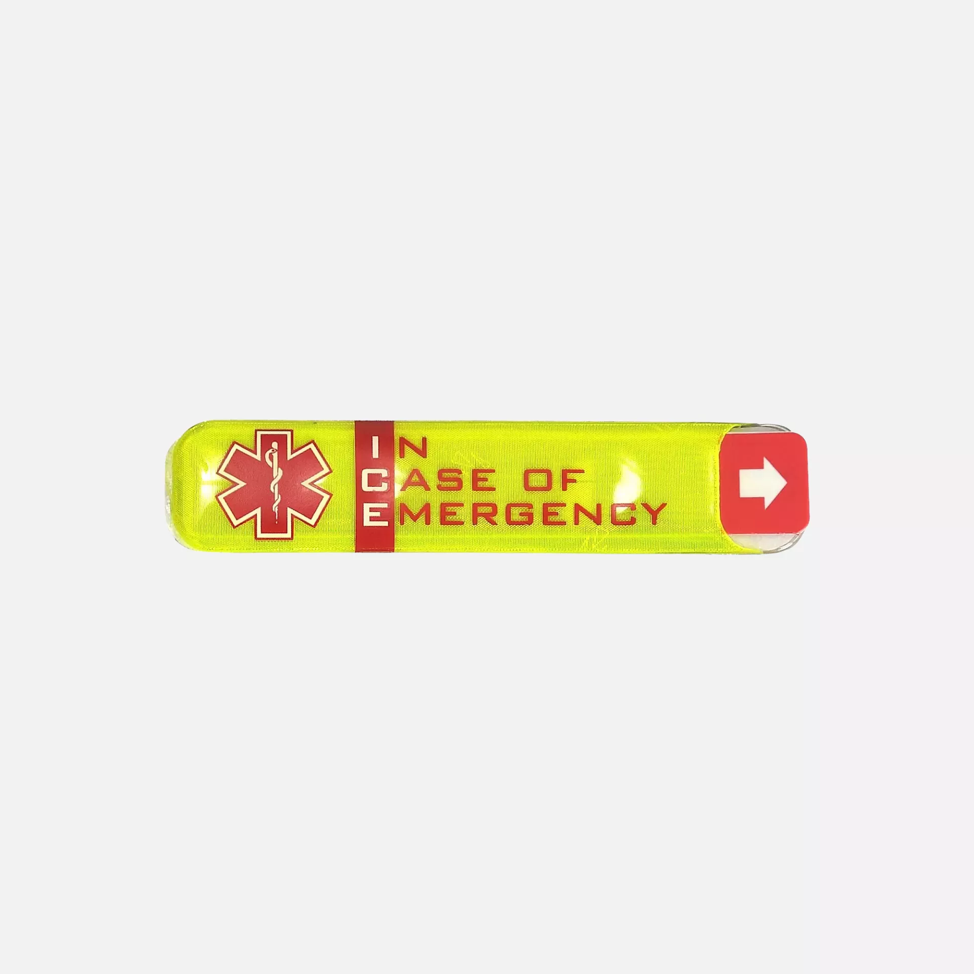 Emergency identification holder designed to provide instant access to critical medical and contact information for accident victims. The water-resistant construction with waterproof paper ensures information remains legible in adverse conditions, while the hi-vis reflective design enables quick recognition by emergency responders. This dual-sided writing capability allows comprehensive information storage for potentially life-saving emergency response.