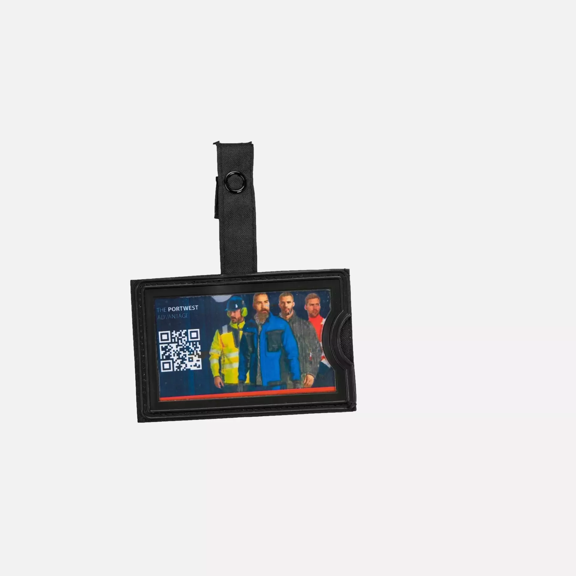 This detachable TPU ID holder provides a versatile solution for displaying identification cards on various garments without requiring sewing or permanent attachment. The holder features a loop with ring stud fastening system that connects to radio loops or belt loops on clothing. Tested to ISO 4675 standards at -30°C by ITS Testing Services (UK) Ltd. (Intertek), it maintains functionality in extreme cold conditions.