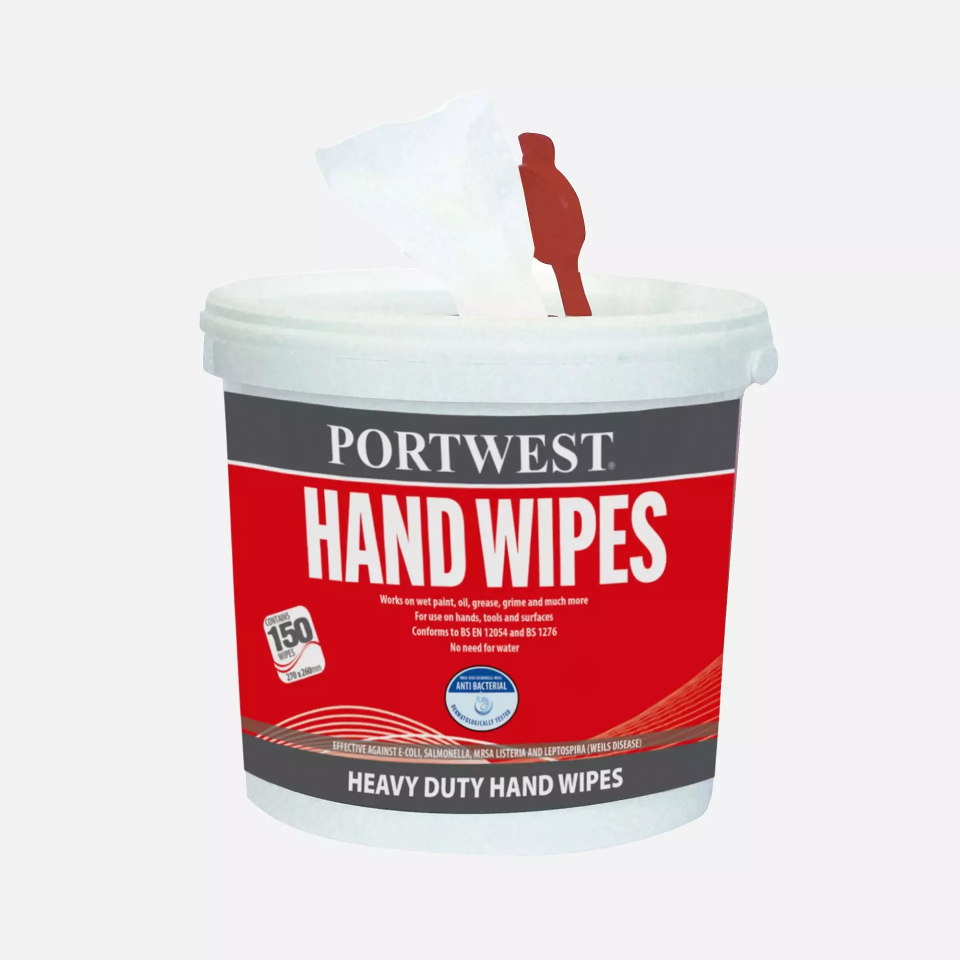 Professional antibacterial hand wipes designed for effective cleaning and disinfection in industrial environments. These wipes remove wet paint, oil, grease, and grime while providing fast-acting antibacterial protection against harmful bacteria including E-coli, Salmonella, MRSA, Listeria, and Weils Disease. The formula kills 99.9% of bacteria and features an orange fragrance for improved user experience.
