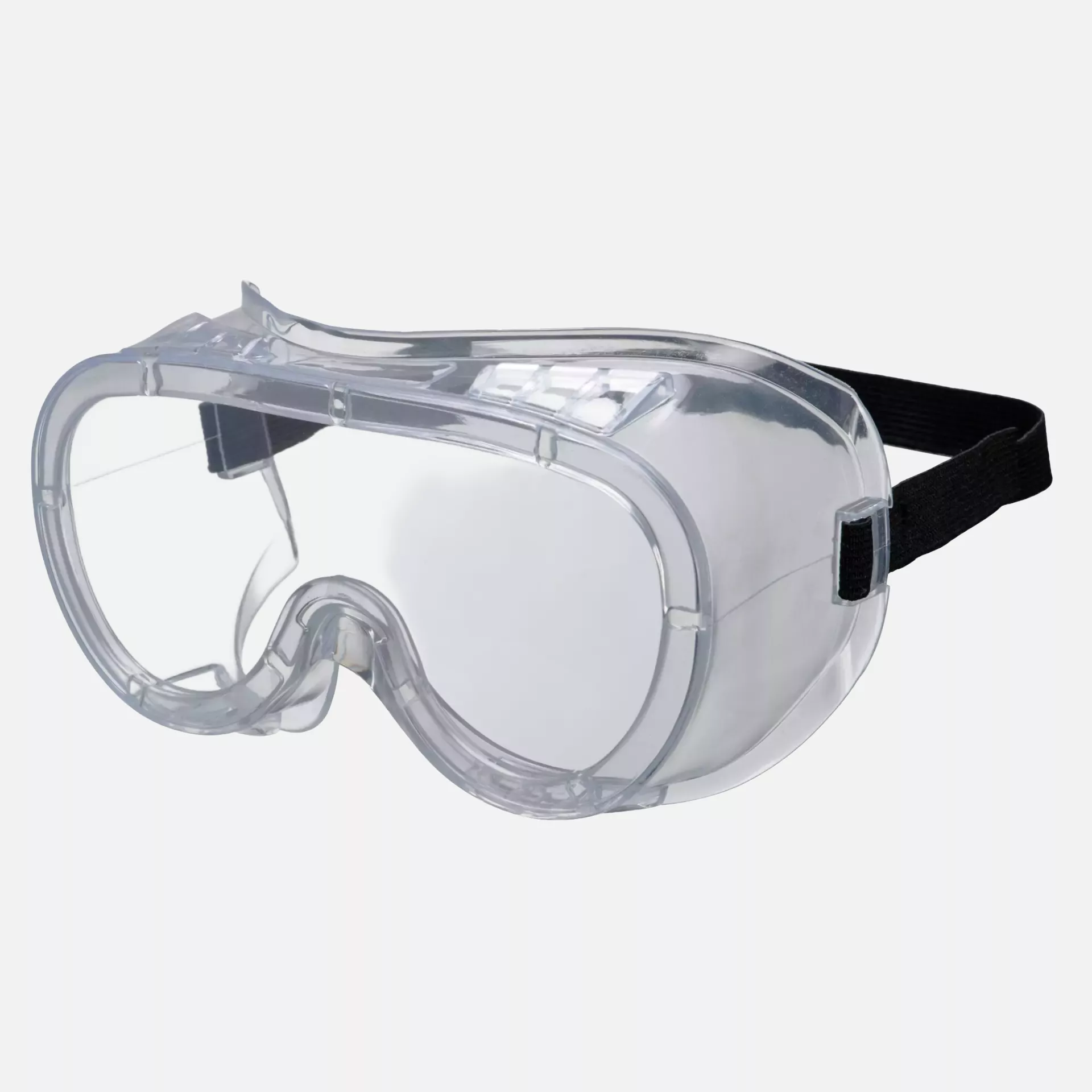 These indirect ventilation chemical goggles feature acetate lens material with superior anti-fog treatment and ultra-soft PVC frame construction for extended wear comfort. The lightweight design accommodates prescription glasses while providing chemical resistance and UV protection. Advanced lens coatings include anti-fog treatment marked with "N" certification and anti-scratch coating for enhanced durability.