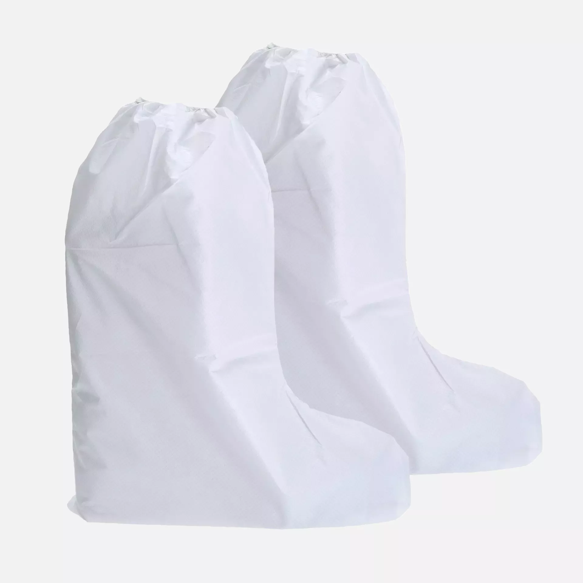 Disposable microporous boot covers providing superior protection against cross contamination in work environments where footwear or floors require protection. These Type PB[6] covers feature elasticated construction for secure fit and safe barrier formation around boots. The fabric meets biological and anti-static protection standards, making them suitable for various industrial applications.