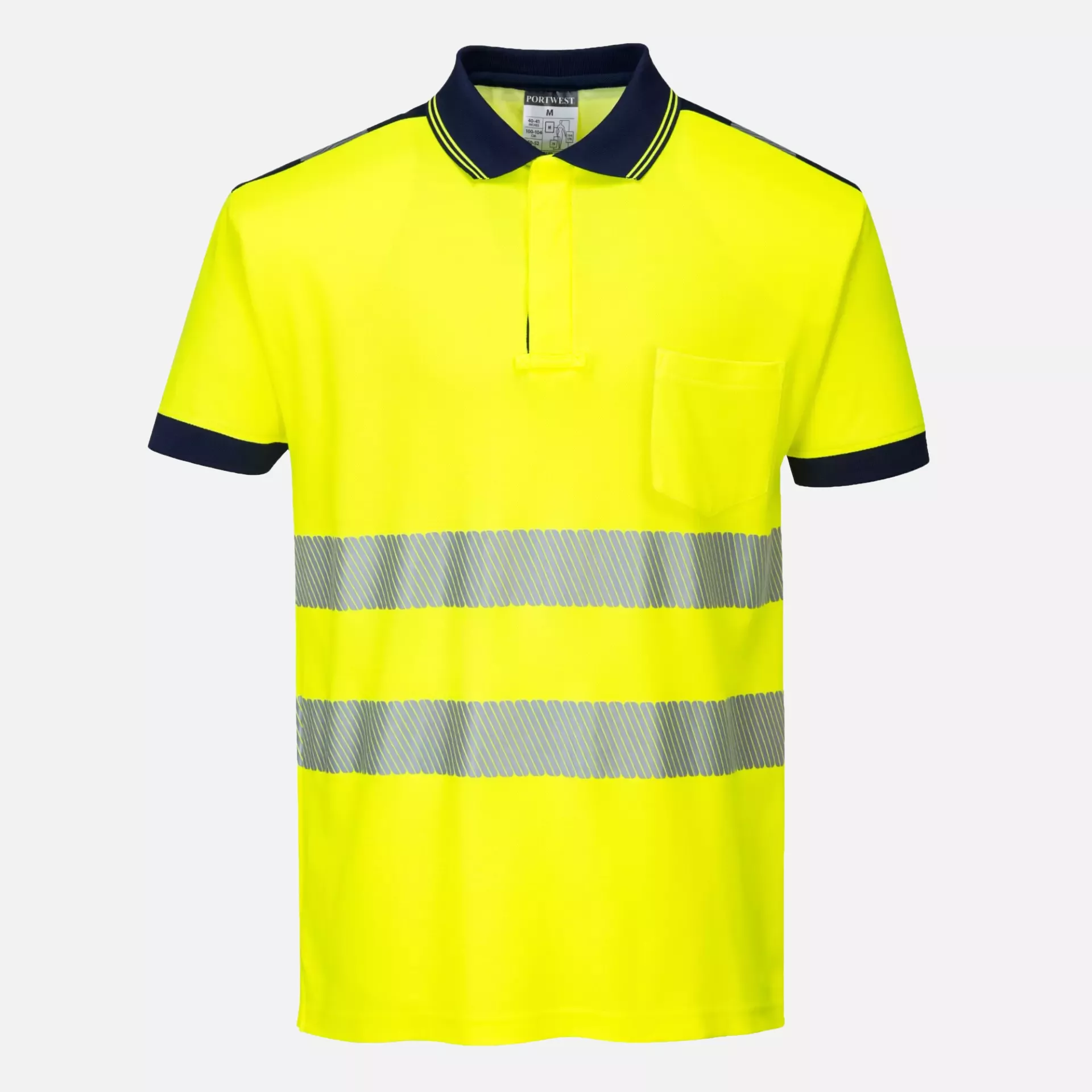 PW3 Hi-Vis Cotton Comfort Polo Shirt S/S, Yellow/Navy