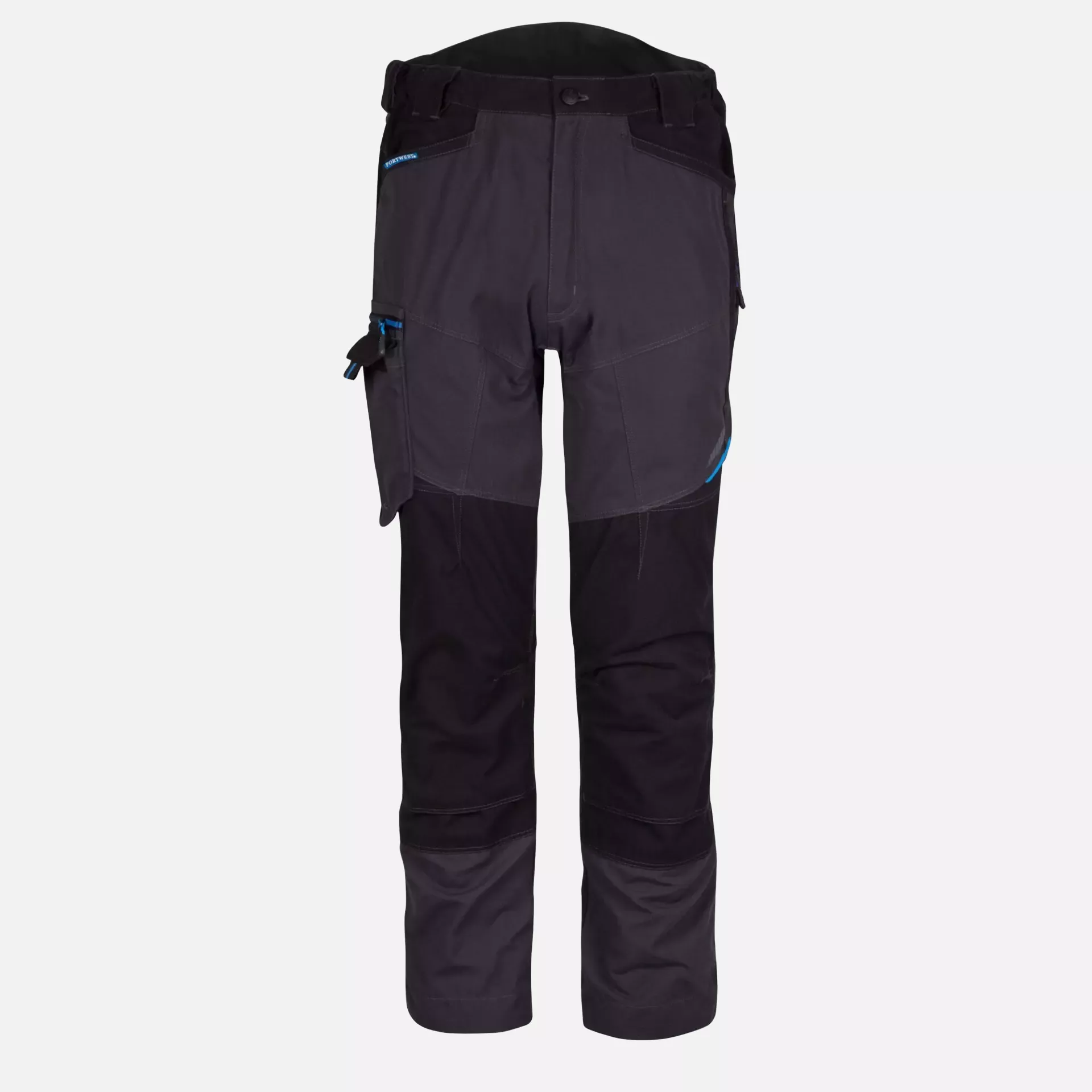 Professional work trousers constructed from durable poly-cotton canvas fabric with innovative stretch panelling for enhanced mobility and comfort. These trousers feature triple-stitched seams for durability, two-tier knee pad pockets for versatile protection, and a comprehensive 8-pocket storage system including specialized compartments for tools and devices. The design incorporates a high-rise back waistband with side elastication and extendable leg length, while 40+ UPF rated fabric provides UV protection for outdoor work environments.