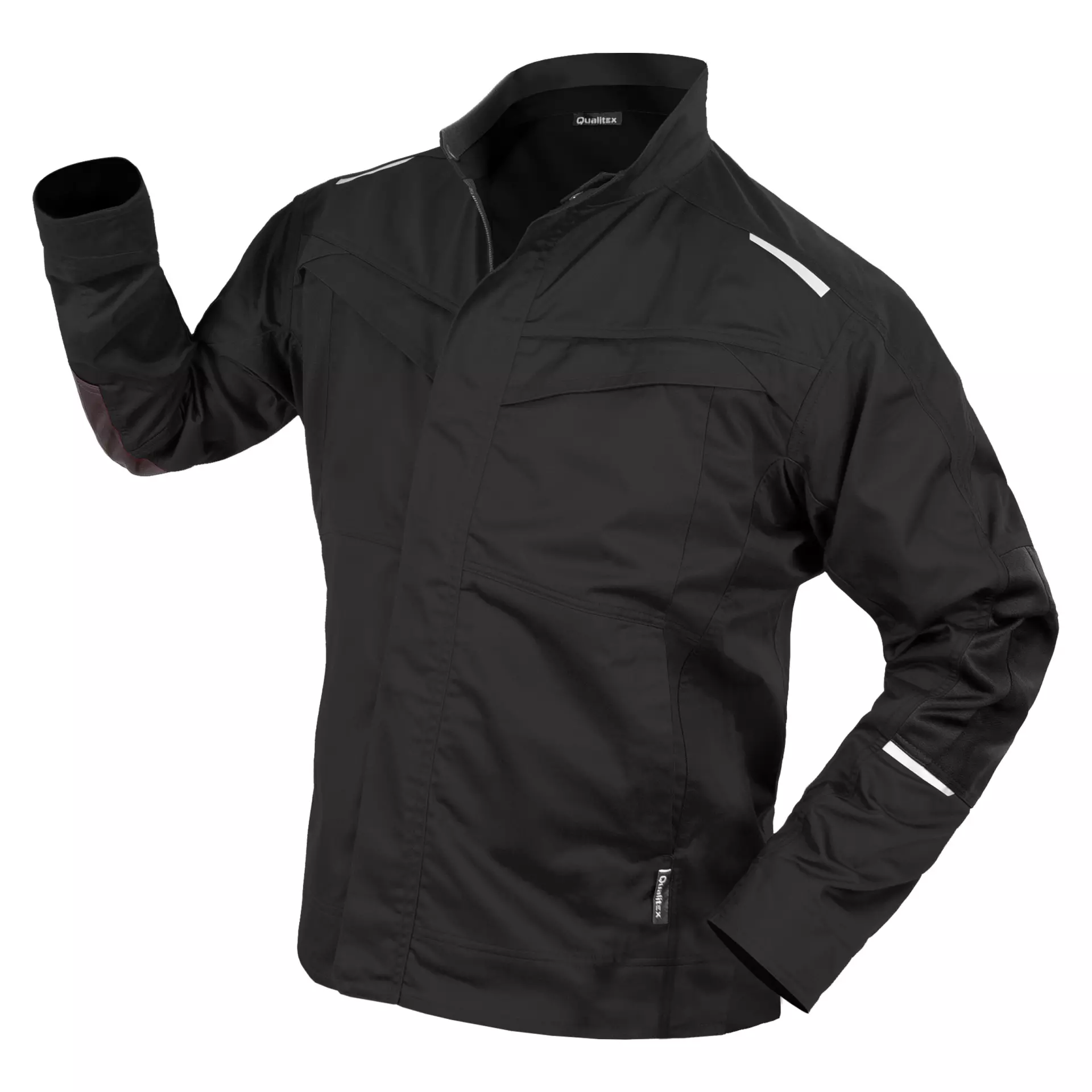 Concealed front zipper with flap and press studs. 2 breast pockets with flap and zipper. 2 side slit pockets. 1 inside breast pocket with integrated pen pocket, additional inside pocket in the front hem area. Elastic knitted inserts in the back and at the side of the jacket hem. Pre-shaped elbows. Inner knitted cuff at the sleeve hem. Extended back section. Signature reflective elements on the shoulder yoke, elbows and lower back.
