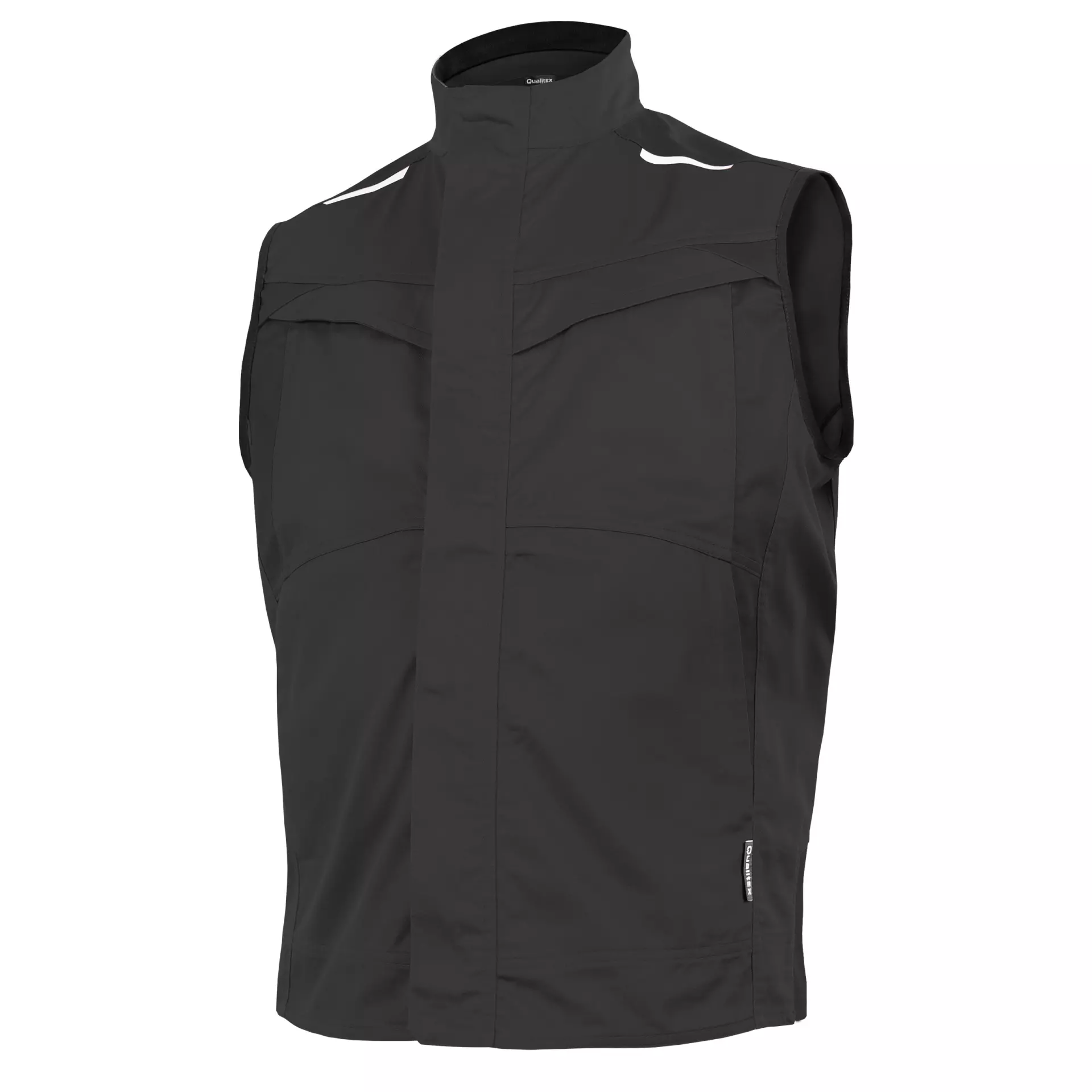Concealed front zipper with flap and press studs. 2 breast pockets with flap and zipper. 2 side slit pockets. 1 inside breast pocket with integrated pen pocket, additional inside pocket in the front hem area. Elastic knitted inserts at the side of the jacket hem. Extended back section. Signature reflective elements on the shoulder yoke and lower back.