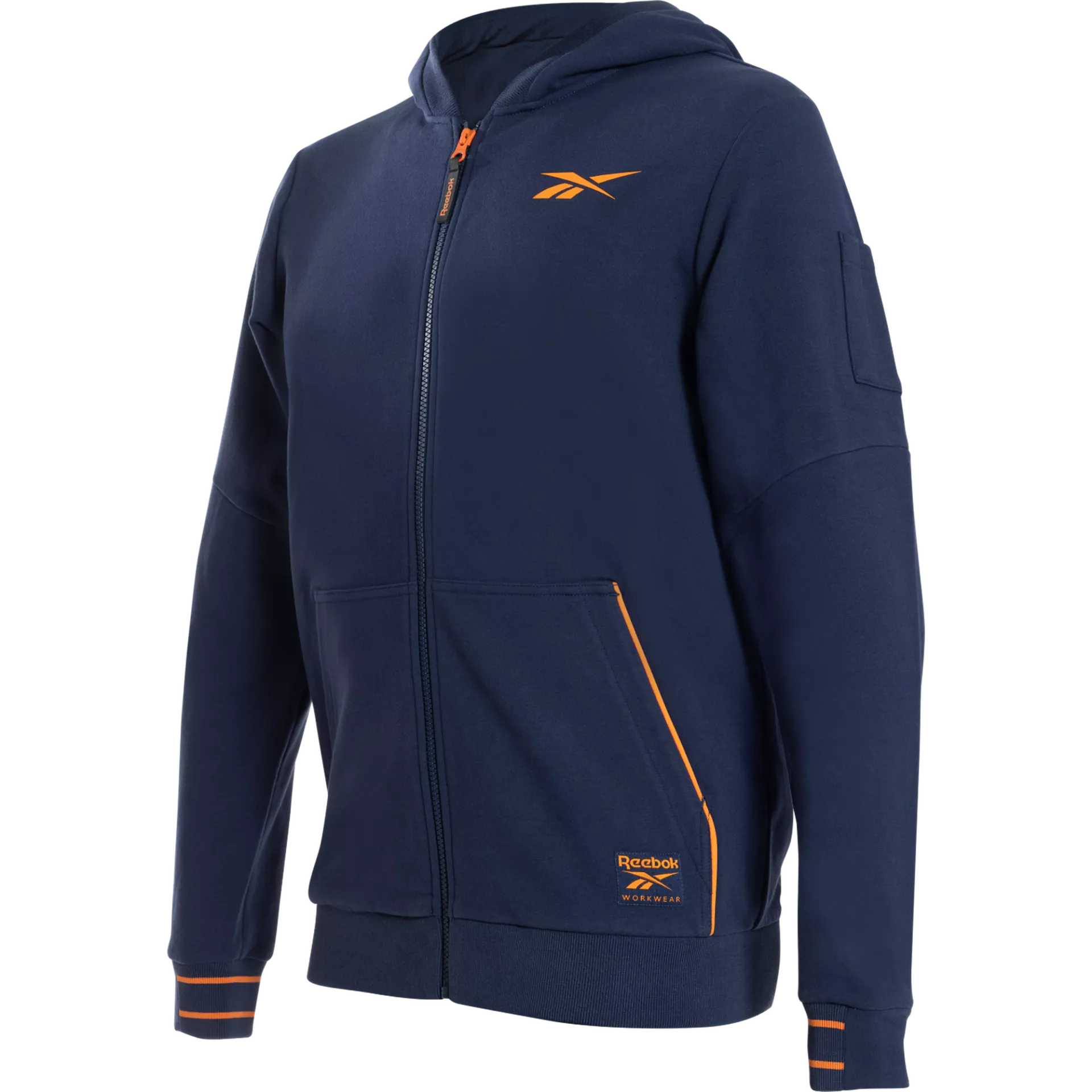 This professional work hoodie is constructed from a heavy 370 g/m² warm cotton blend designed to ensure comfort and well-being throughout the workday. It features a full-length YKK zipper, reinforced elbows for increased durability, and elastic ribbed detailing for a secure fit. Suitable for use as a standalone garment in autumn or as a mid-layer during colder periods, this hoodie is optimized for various professional sectors.