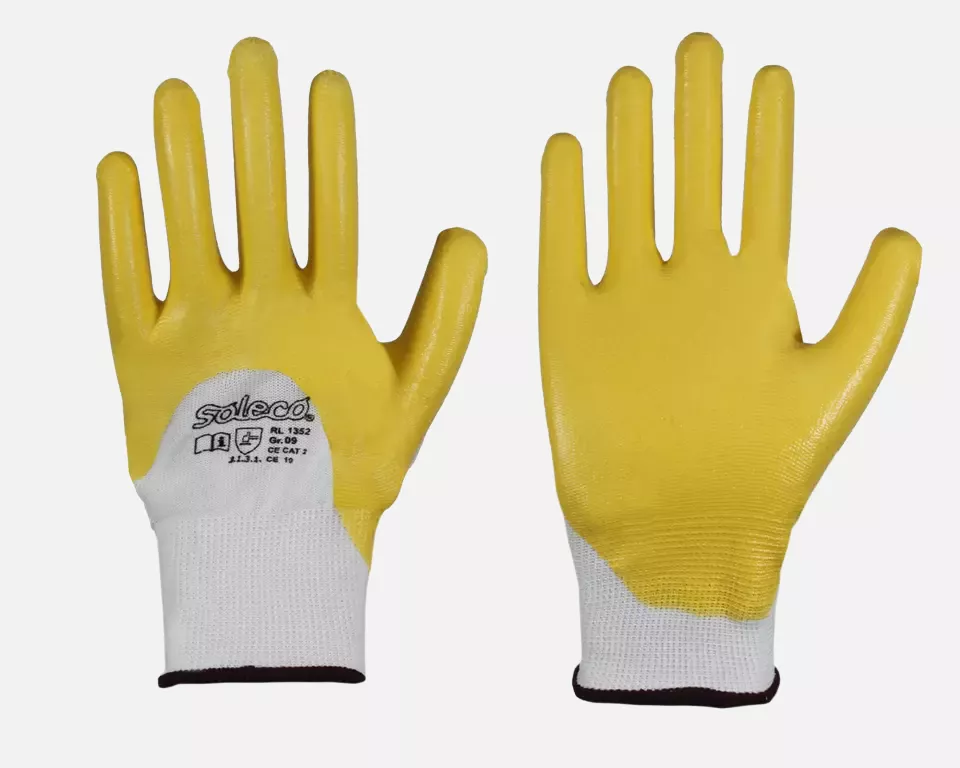 Soleco Nitrile Glove Yellow With Knit Wrist Partially Coated CE CAT 2, 144 pairs
