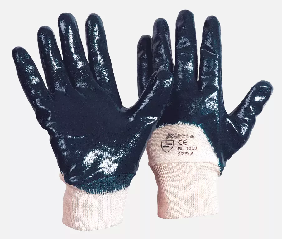 Soleco Nitrile Glove Blue with Knit Wrist Partially Coated CE CAT 2, 144 pairs