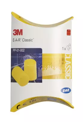 E-A-R Classic 1-Pair Pillow Pack SNR = 28 dB made from soft foam for excellent and comfortable protection. CE. PU = 1000 pairs (= 4 sub-packs). 1 sub-pack = 250 pairs. The soft, energy-absorbing foam ensures low equilibrium pressure, making these earplugs one of the most comfortable hearing protection products from 3M. They are moisture resistant and therefore do not swell easily. The specially developed, slow-recovery polymer foam ensures good acoustic properties. The cylindrical shape fits most ear canals and offers effective protection. The cellular surface structure prevents slipping, meaning the earplug does not have to be re-inserted as often. They are compatible with the 3M E-A-Rfit Dual-Ear Validation System.