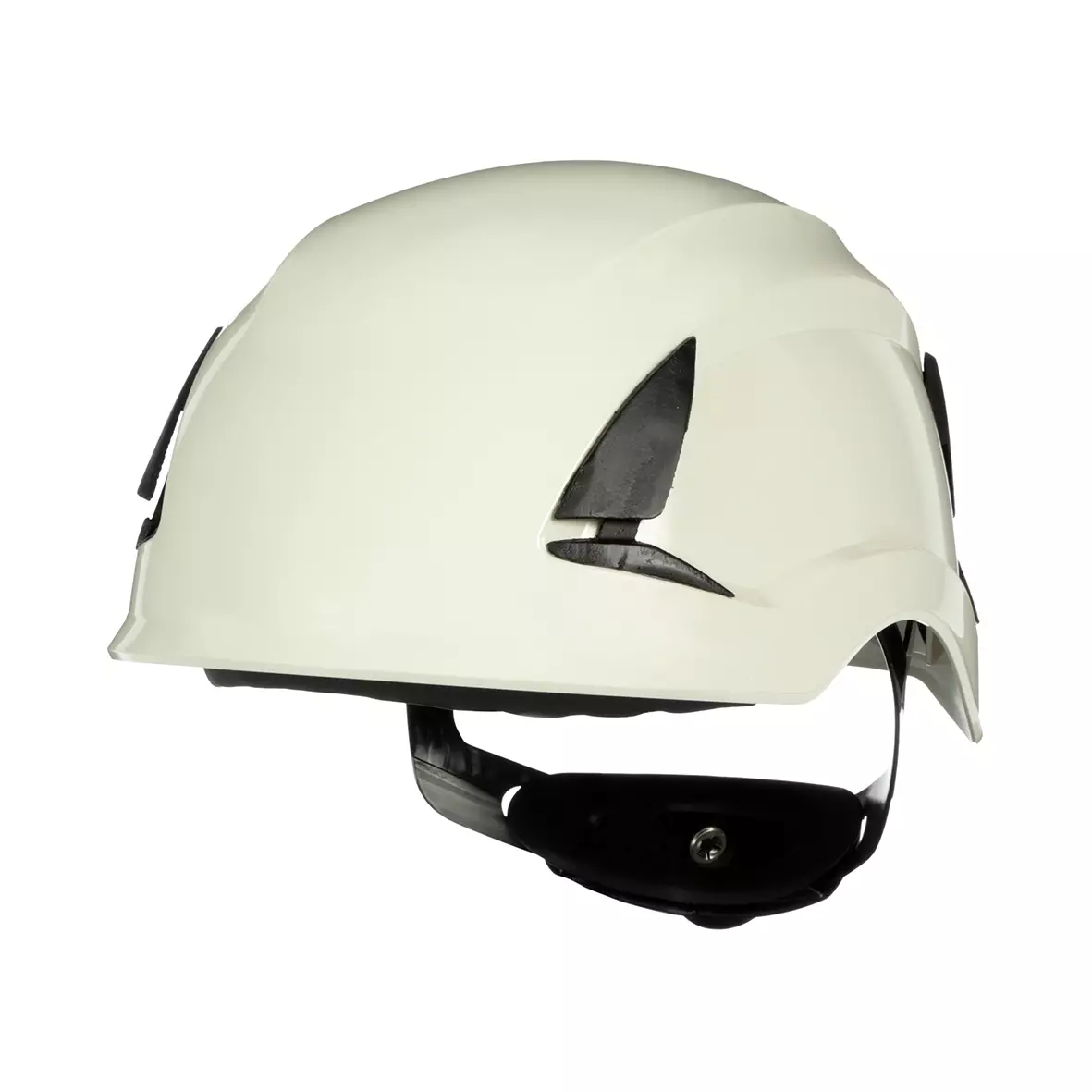 Safe, comfortable head protection for general industrial use that protects against small falling objects. Tested for lateral deformation and molten metal splash. Electrical insulation for voltages of 1000 VAC and 440 VAC. UV-stabilised ABS material. The suspension system features exclusive, patented 3M Pressure Diffusion Technology. The 4-point ratchet suspension system allows the wearer to adjust the helmet height and fit with multiple vertical adjustment options. The brimless design allows for unobstructed upward visibility, similar to a climbing helmet. The existing slots and mounts are compatible with a variety of 3M(TM) protective visors, earmuffs and other accessories. The 3M UVicator Sensor informs the wearer when the safety helmet has been exposed to excessive UV radiation and needs to be replaced. The patented UV indicator allows the wearer to recognise when the helmet has been exposed to excessive UV stress and should be replaced. Tested for lateral deformation and molten metal splash.