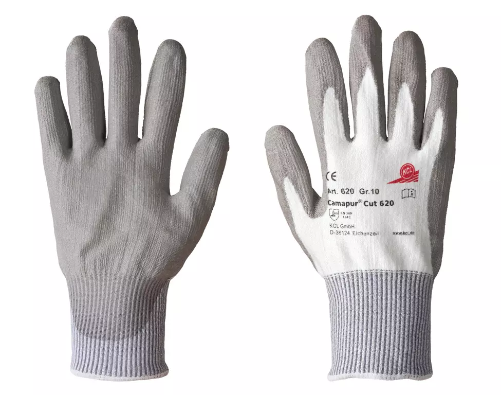 The Camapur® Cut is a Category II protective glove according to EN 388, coated with polyurethane. Despite the thin coating, the HPPE high-modulus fiber liner ensures extremely good mechanical durability while guaranteeing high tactile sensitivity. The glove features an excellent fit and offers very good grip, even with wet, slippery objects and tasks. The Camapur Cut matches the Camapur Comfort in workmanship and wearing comfort but possesses significantly better mechanical properties and thus a long service life (4. 3. 4. 2 according to EN 388). The size of the glove is identifiable by the different colors at the knitted cuff.