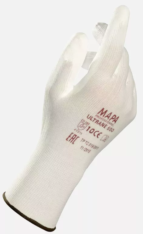 ULTRANE 550 PU, Knit Wrist, Partially Coated, 21-26cm, White, 100 pairs