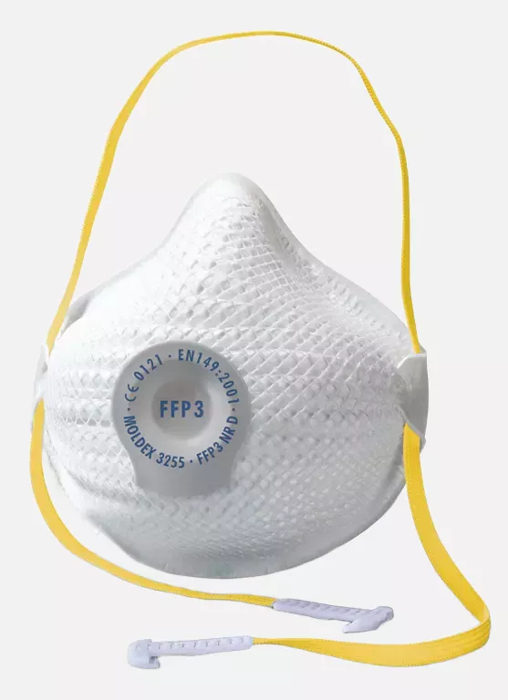 The disposable half mask in size S/M with Klimaventil® and pleated filter technology offers a 260% larger filter surface, lower breathing resistance and a high absorption capacity, resulting in lower overall consumption. It protects against dusts, fumes and water- and oil-based aerosols as well as CMR substances, radioactive particles, enzymes and airborne biological agents in risk groups 2 and 3. The mask has a clip fastener on the attachment which makes it practical and easy to hang around the neck. It is individually packaged and has an additional dolomite dust test. The Klimaventil® makes it easier to exhale and keeps the air under the mask cool. The mask complies with EN 149: 2001 A1: 2009 and is labeled FFP3 NR D.