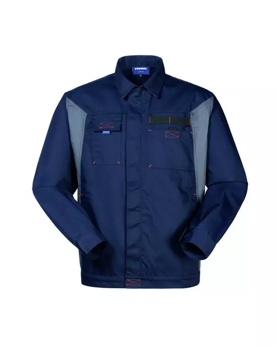 This professional work jacket combines functionality with durability through multiple secure storage options and adjustable features. The garment features a covered front zip closure and strategic Velcro fastening points for enhanced practicality. Constructed from a robust cotton-polyester blend weighing 245 g/m², this jacket delivers reliable performance in workplace environments.