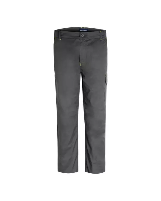 Professional work trousers crafted from durable Mini Ripstop fabric, combining cotton with elastane for enhanced flexibility and comfort. These trousers feature multiple specialized pockets and reinforced construction details for demanding work environments. The 195 g/m² fabric weight provides durability while maintaining comfort during extended wear.