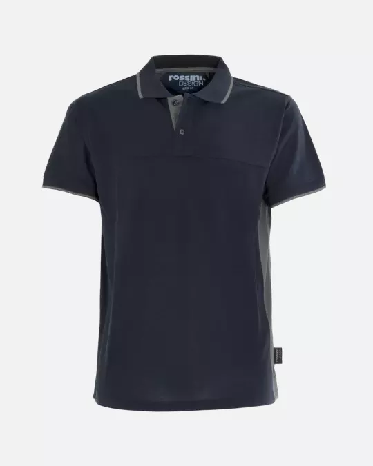 Professional polo shirt crafted from recycled polyester piqué fabric, featuring functional design elements for enhanced comfort and durability. The shirt incorporates strategic contrast details and practical features including a sweatband, front and back yoke construction, and side slits for improved mobility.