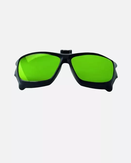Protective eyewear featuring five green shade filters specifically designed for welding applications and related work. This lightweight frame combines nylon and polycarbonate materials, offering professional-grade protection with optical class 1 certification and FT impact resistance rating.