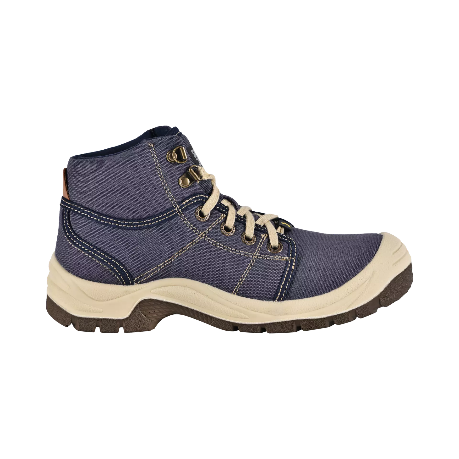 The DESERT S1 P is a versatile safety boot featuring a stylish canvas upper that combines protection with comfort for demanding work environments. This professional footwear offers comprehensive safety features including steel toe protection, puncture-resistant midsole, and SRC-certified slip resistance tested on both steel and ceramic surfaces. The boot's antistatic properties prevent static electricity buildup while the SJ foam footbed provides excellent shock absorption and moisture management.