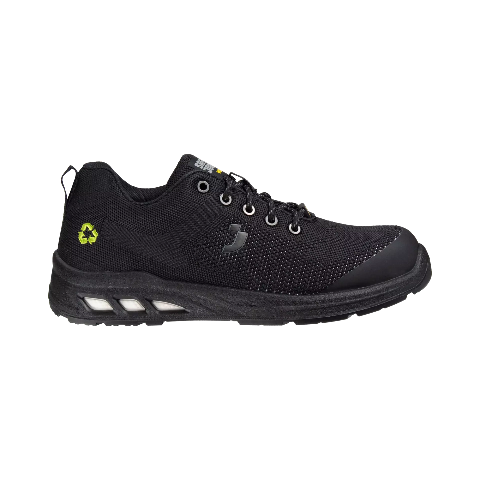 The ECOFITZ S1P safety shoe combines environmental responsibility with exceptional performance for light industrial applications. Made from recycled materials, this highly breathable shoe features a knitted recycled textile upper and recycled mesh lining that optimize airflow while maintaining protection. The steel toe cap and midsole provide reliable safety against impacts and punctures, while the slip-resistant PU outsole ensures stable footing on various surfaces.