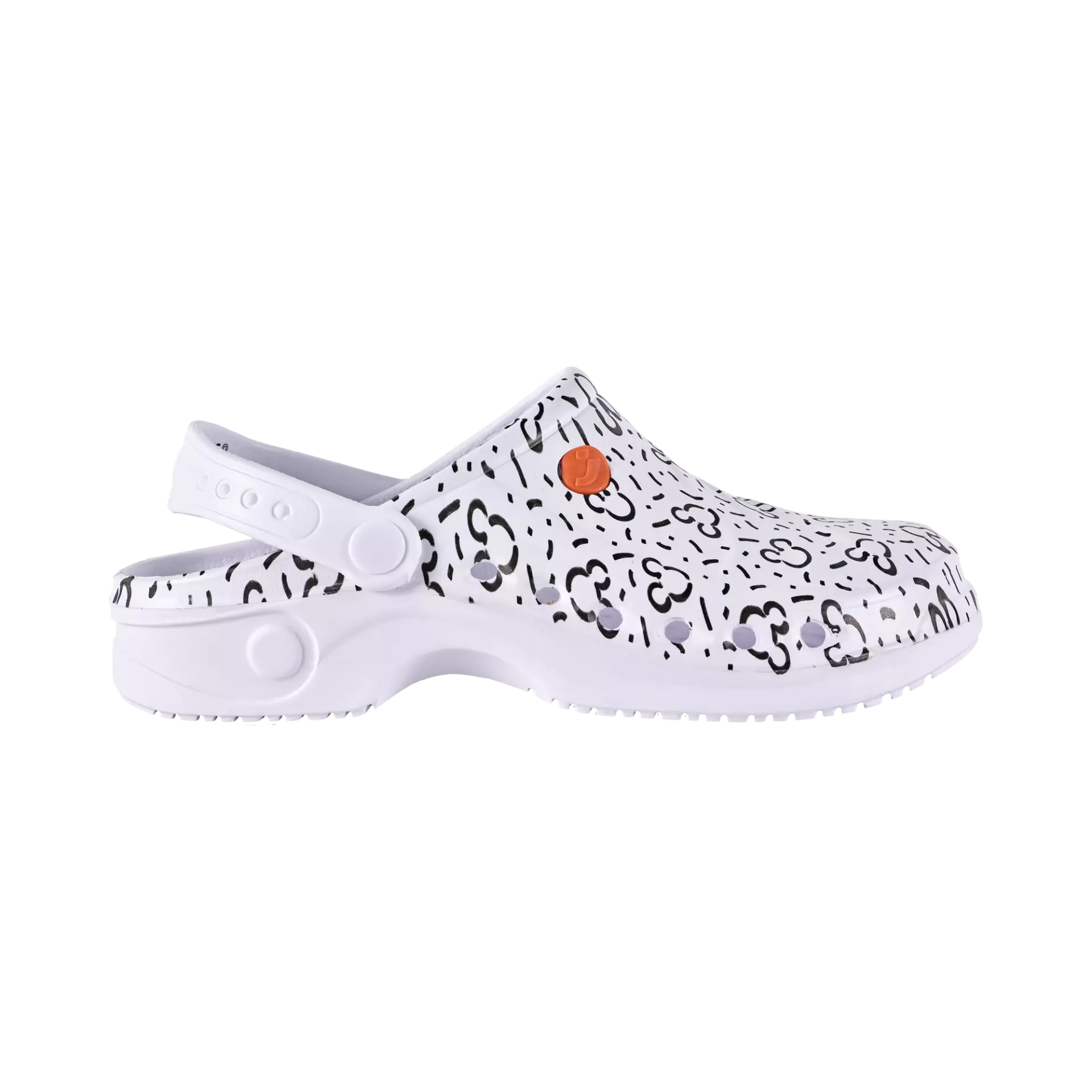 Chemically and UV-sterilizable, Slip resistant, ESD-certified footwear, Metal free, Lightweight, Orthopaedic fitting (Neskrid), Scuff cap, Machine washable (30°C)