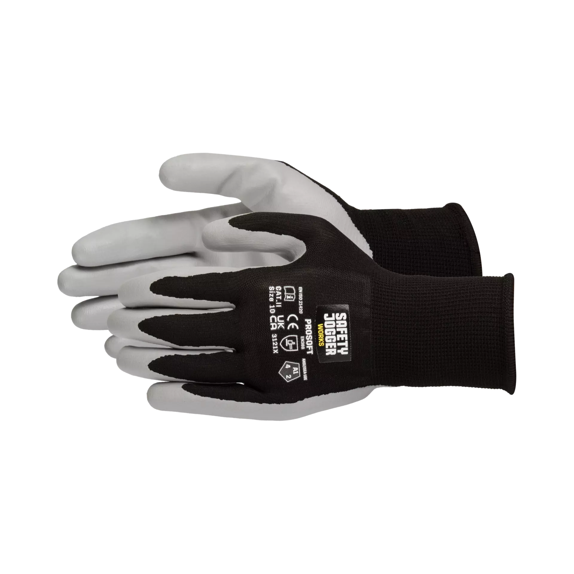 The seamless PROSOFT gloves by Safety Jogger are engineered for precision tasks requiring exceptional tactile sensitivity and manual dexterity. These specialized gloves feature a foam nitrile coating that delivers superior grip performance across various conditions, including dry, damp, and lightly oiled surfaces. Their seamless construction enhances comfort during extended wear while maintaining the fine motor control needed for delicate operations.