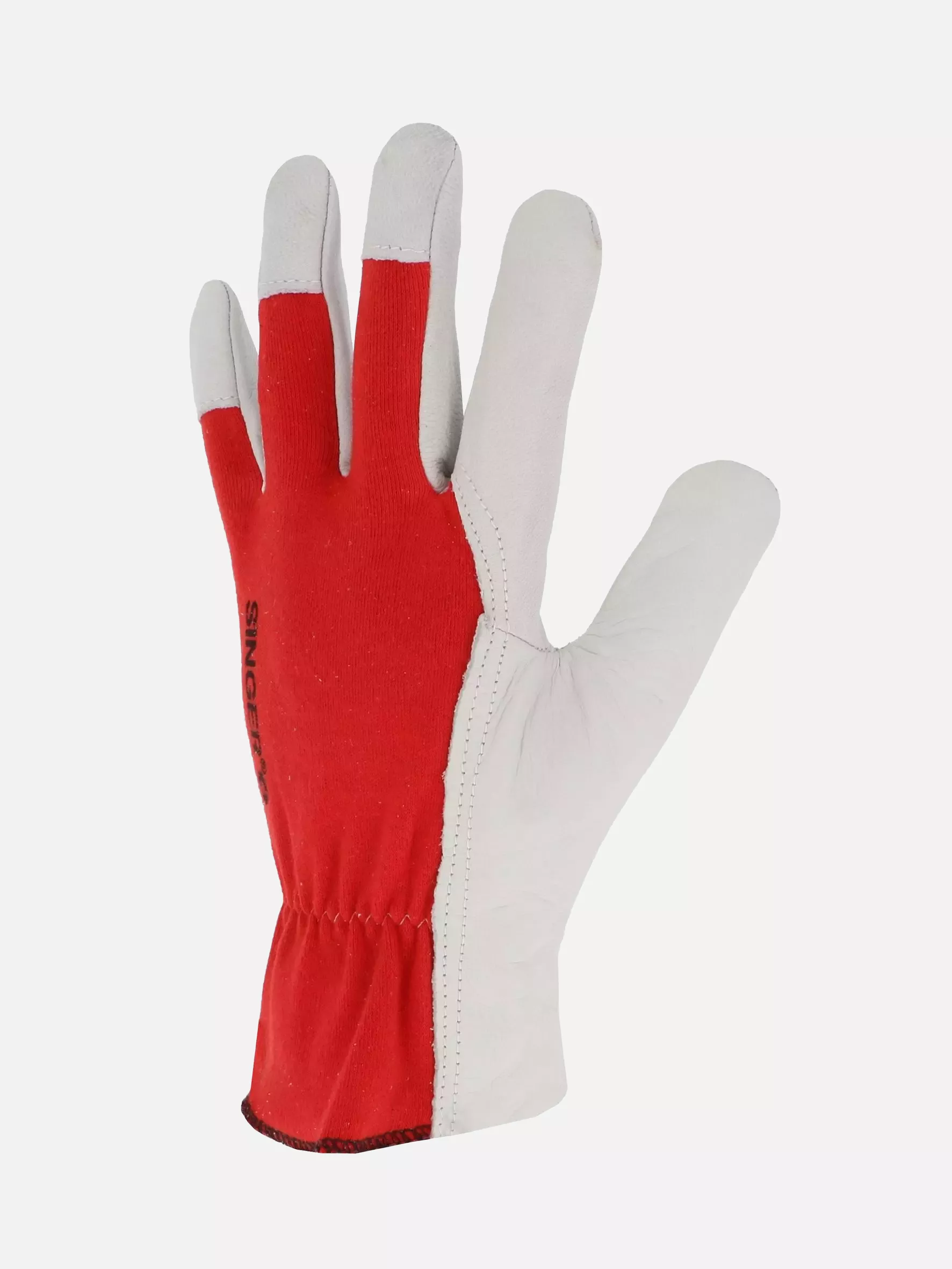 These protective gloves feature goatskin leather palms that offer an ideal compromise between cowhide and lambskin leather. The goatskin provides excellent dexterity while maintaining good mechanical resistance— stronger than lambskin but more flexible than cowhide. The red cotton interlock back allows the hand to breathe, making these gloves suitable for light handling tasks in dry environments.