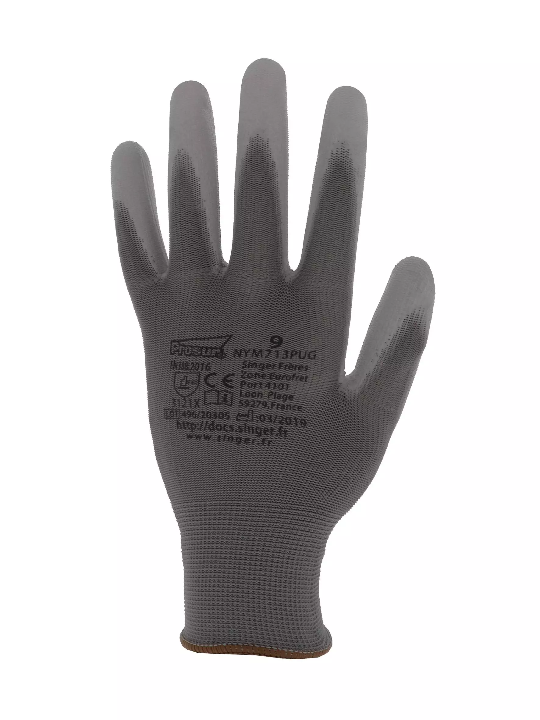 PU Coated Gloves, Grey, 10 pairs