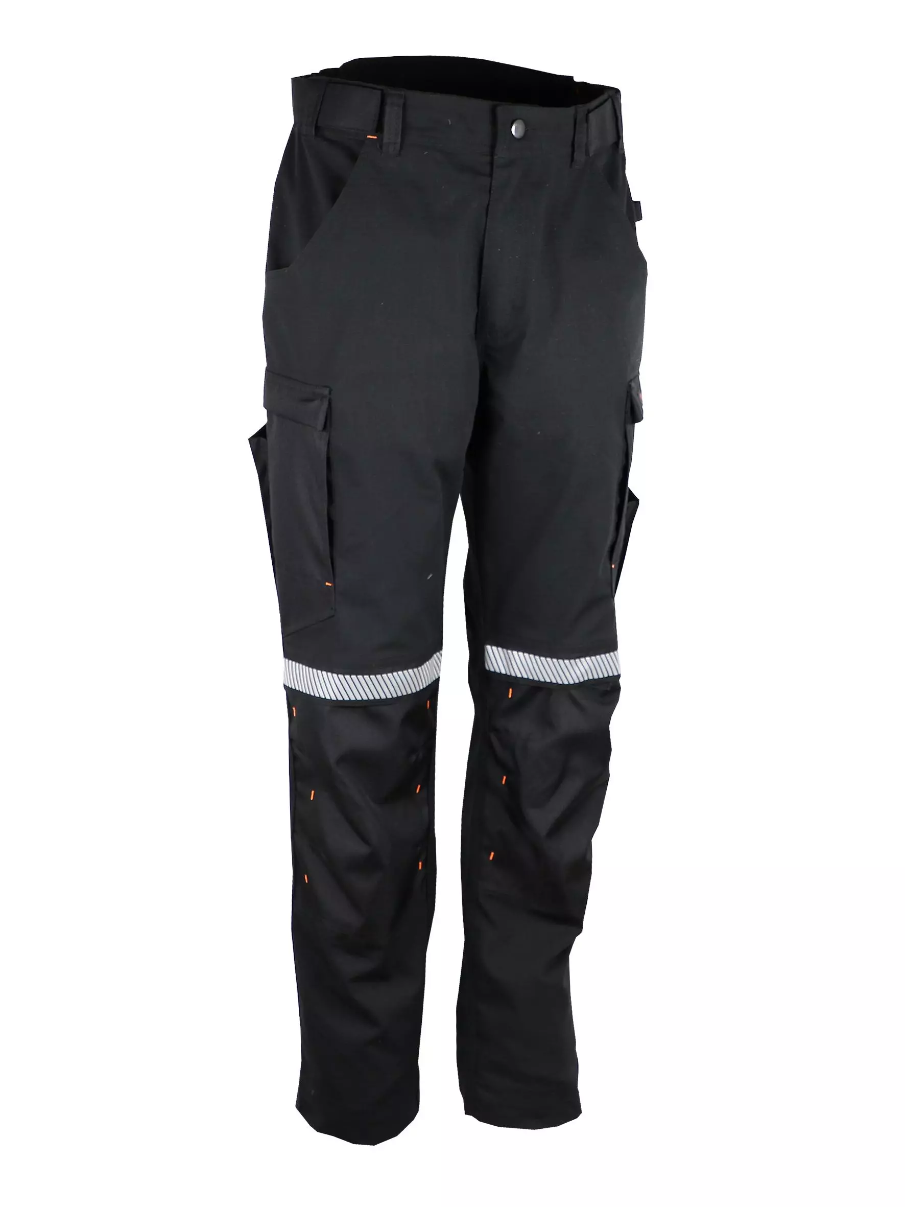 These ripstop work trousers combine comfort and durability with a blend of cotton, polyester, and elastane fabric. The addition of elastane provides excellent flexibility and freedom of movement without compromising strength, while the ripstop construction offers enhanced tear resistance. Featuring reinforced knee pad pockets and reflective elements, these trousers are designed for professionals who need reliable workwear with practical storage options.