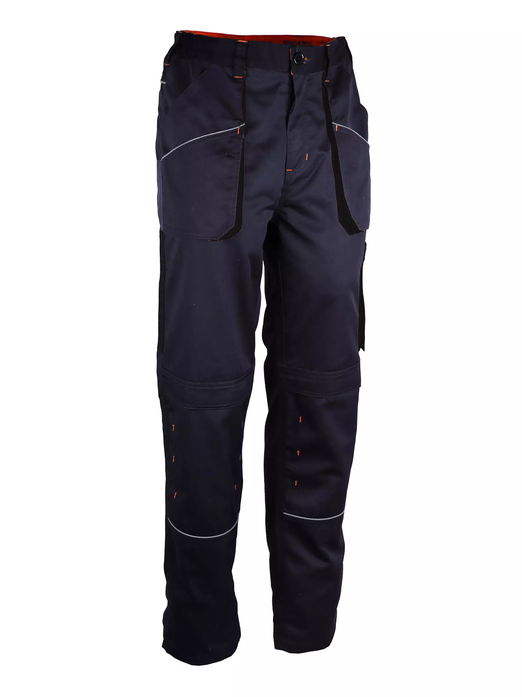 These professional work trousers combine durability with comfort through a blend of polyester and cotton fabric with triple seams. Designed for versatility across multiple work environments, they feature numerous functional pockets, knee pad compartments, and reflective piping for enhanced visibility. The elasticated waist provides quick adjustment and improved comfort during extended wear periods.