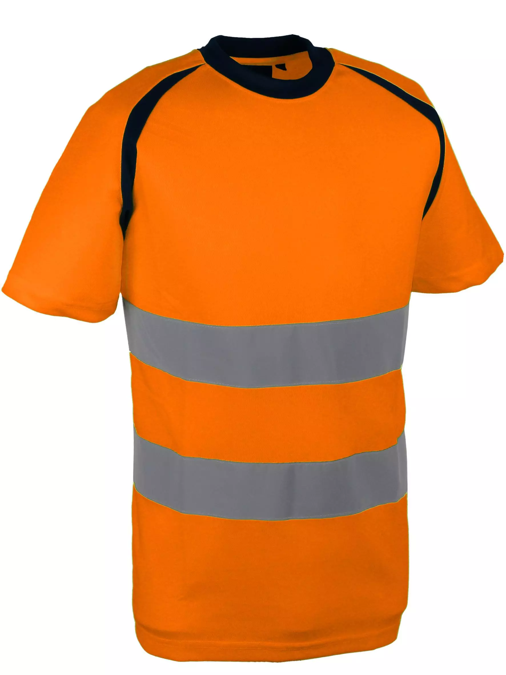 This high visibility t-shirt combines safety with comfort, featuring a lightweight 150 g/m² bird-eye polyester construction that provides excellent breathability and functionality. Designed with retro-reflective horizontal bands around the body, it meets EN ISO 20471 Class 2 high visibility standards for enhanced worker safety in various professional environments. The modern cut and reinforced neckline ensure durability while maintaining comfort during extended wear periods.