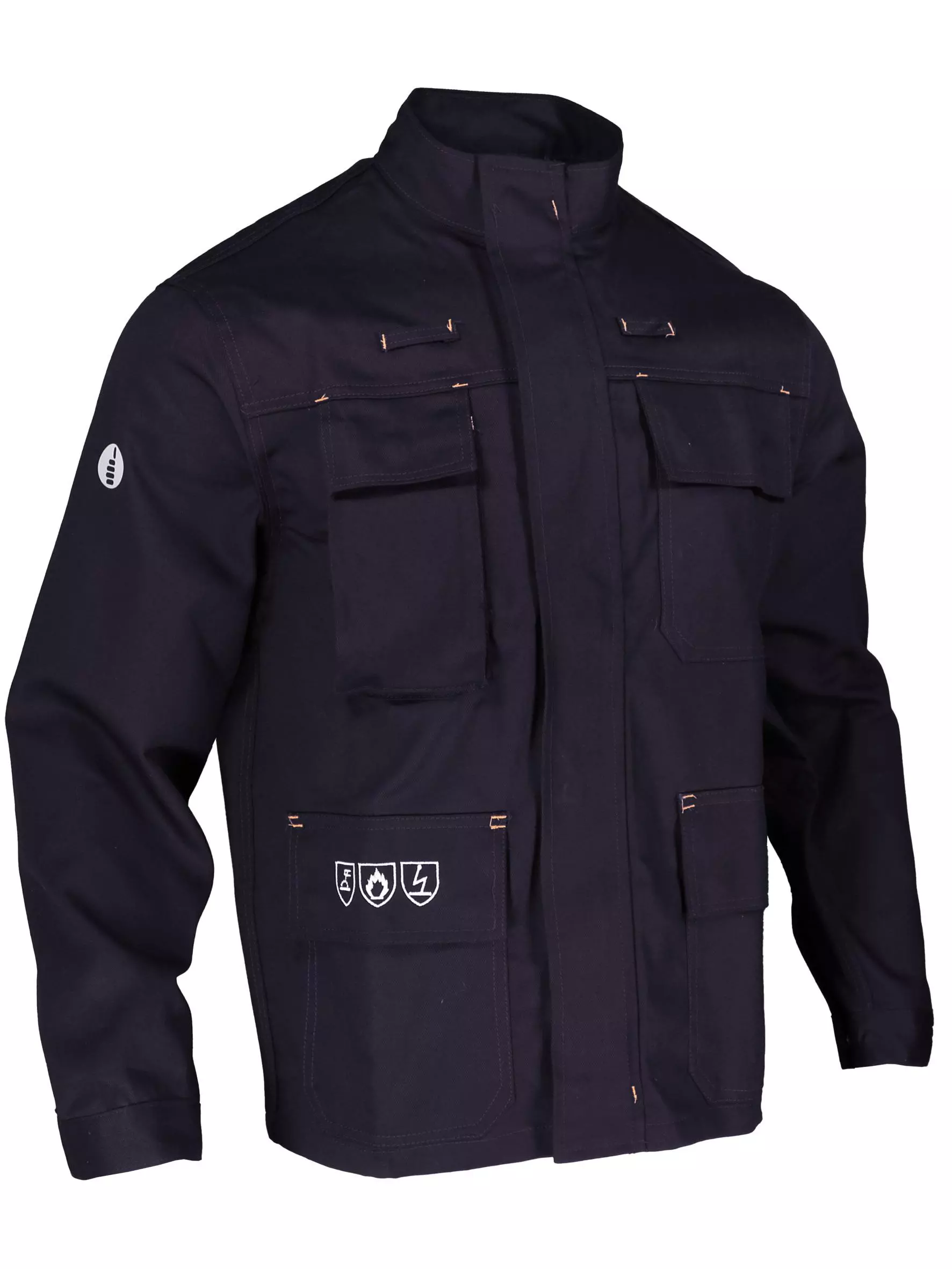 The VALPA protective jacket offers professional-grade flame retardant protection for industrial environments. Constructed from a 350 g/m² blend of 98% cotton and 2% carbon, this jacket provides excellent fire resistance while maintaining comfort during extended wear. The garment meets multiple safety standards including EN ISO 11612 and EN ISO 11611 for heat, flame, and welding protection, as well as EN 1149-5 for antistatic properties, making it suitable for various industrial applications.