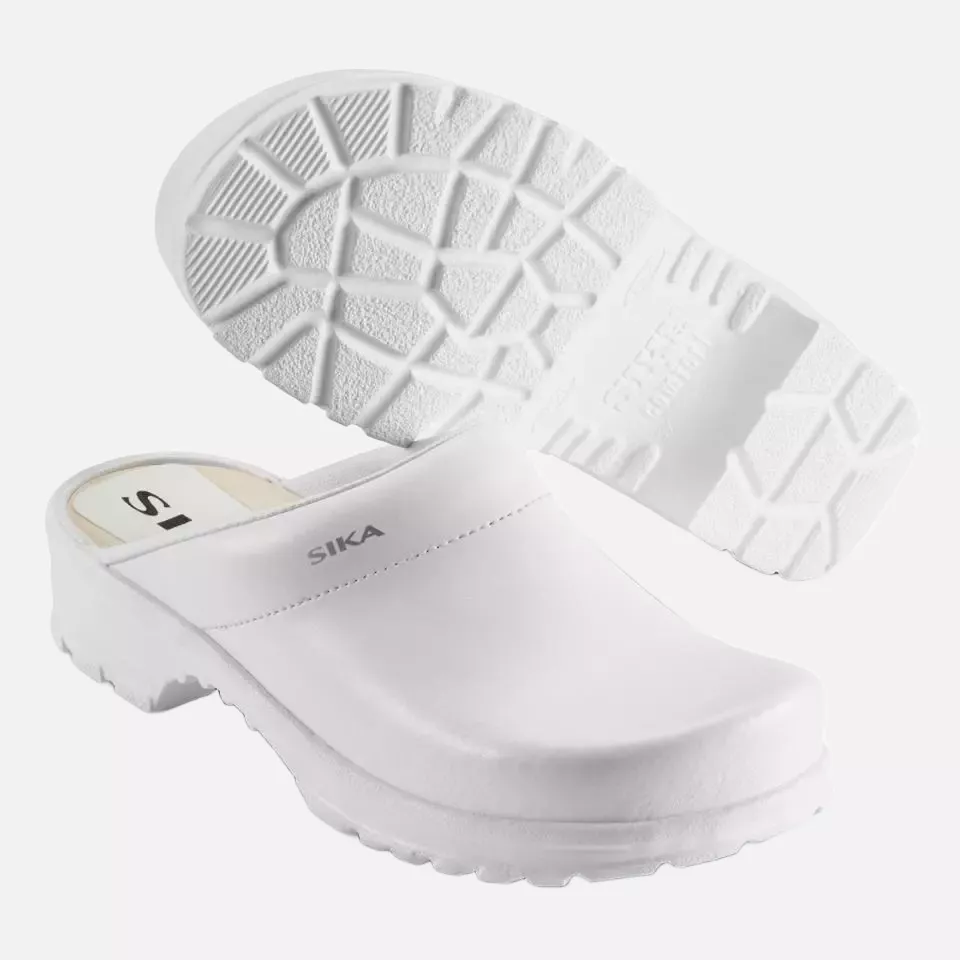 Robust clog with wide fit and wooden footbed. Available in Black and White