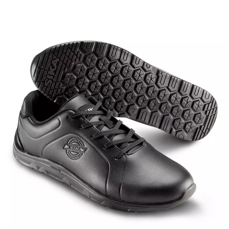 Lightweight, comfortable and durable occupational shoe, specially designed for HORECA and kitchen areas with hard, wet and slippery floors. The outsole is particularly slip-resistant and shock-absorbing. The shoes are made of durable, breathable and water-repellent microfiber. They are also tested for resistance to chemicals in cleaning agents. The lining consists of breathable textile fabric with additionally reinforced microfiber at the heel. The insole is breathable, shock-absorbing and sweat-wicking. The shoes are easy to clean. Washable at 40 °C.