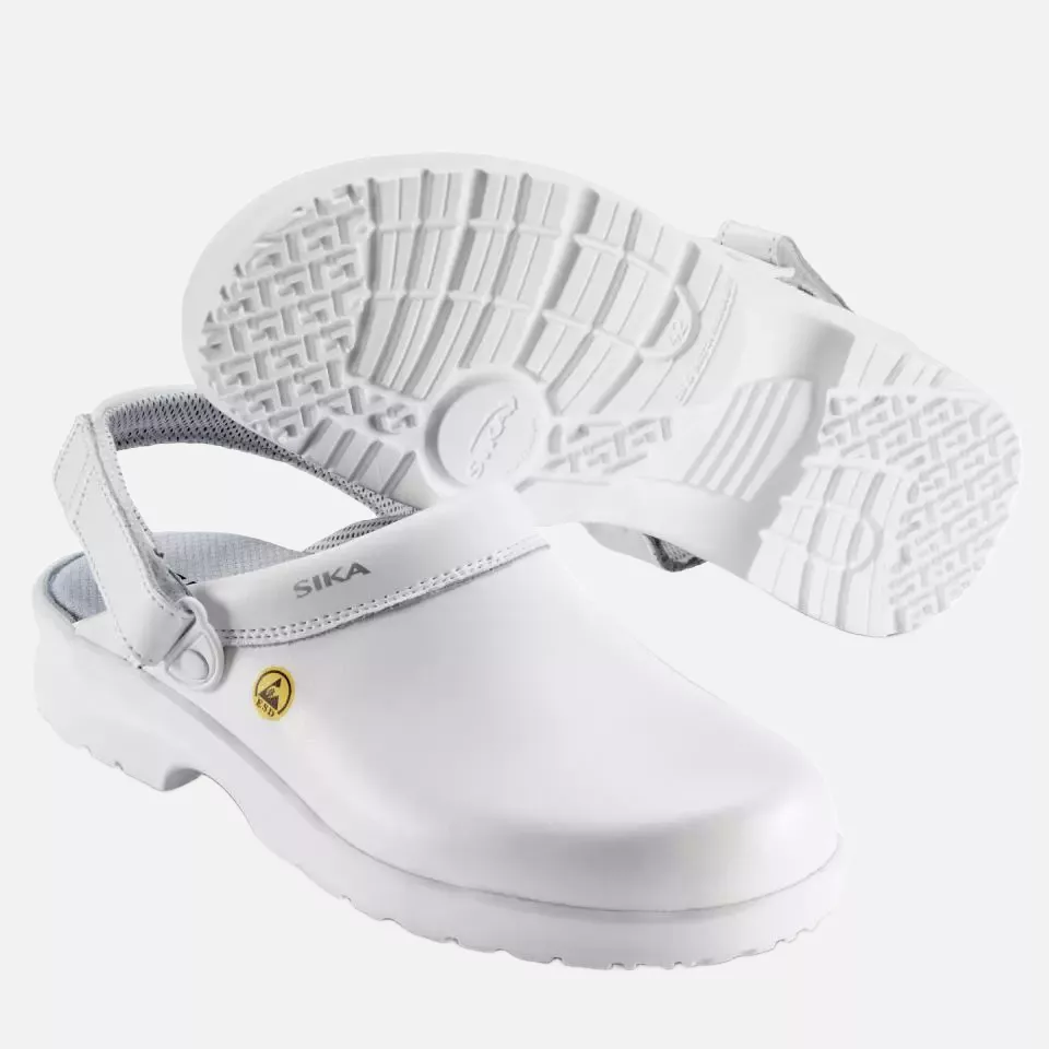 Super lightweight and comfortable clog with adjustable heel strap. Made of breathable and durable Permair® leather. Particularly slip-resistant and shock-absorbing outsole. The construction of the sole ensures stability and reduces the risk of injuries from twisting the foot. With replaceable insole made of breathable, sweat-wicking material with antibacterial properties - washable at 30 °C. Lining made of sweat-absorbing, breathable, durable, and quick-drying Politex. Available in Black and White. ESD approved.
