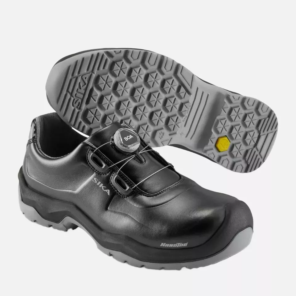 Extra slip-resistant and easy-to-clean safety shoes with BOA® Fit System and Nanotoe™ toe cap. The outsole provides a stable grip on ladders and features a stabilizing shank that prevents twisting and distributes pressure across the entire sole. The shoe is made of breathable, durable Permair® leather; the lining consists of sweat-wicking and quick-drying Sympatex Moisture-Tech® fabric with extra reinforcement at the heel. Breathable, washable, and antibacterial insole. Additional toe reinforcement, ESD approved, and PVC-free. Lightweight, thin, and strong toe cap made of carbon nanotube reinforced fiberglass.