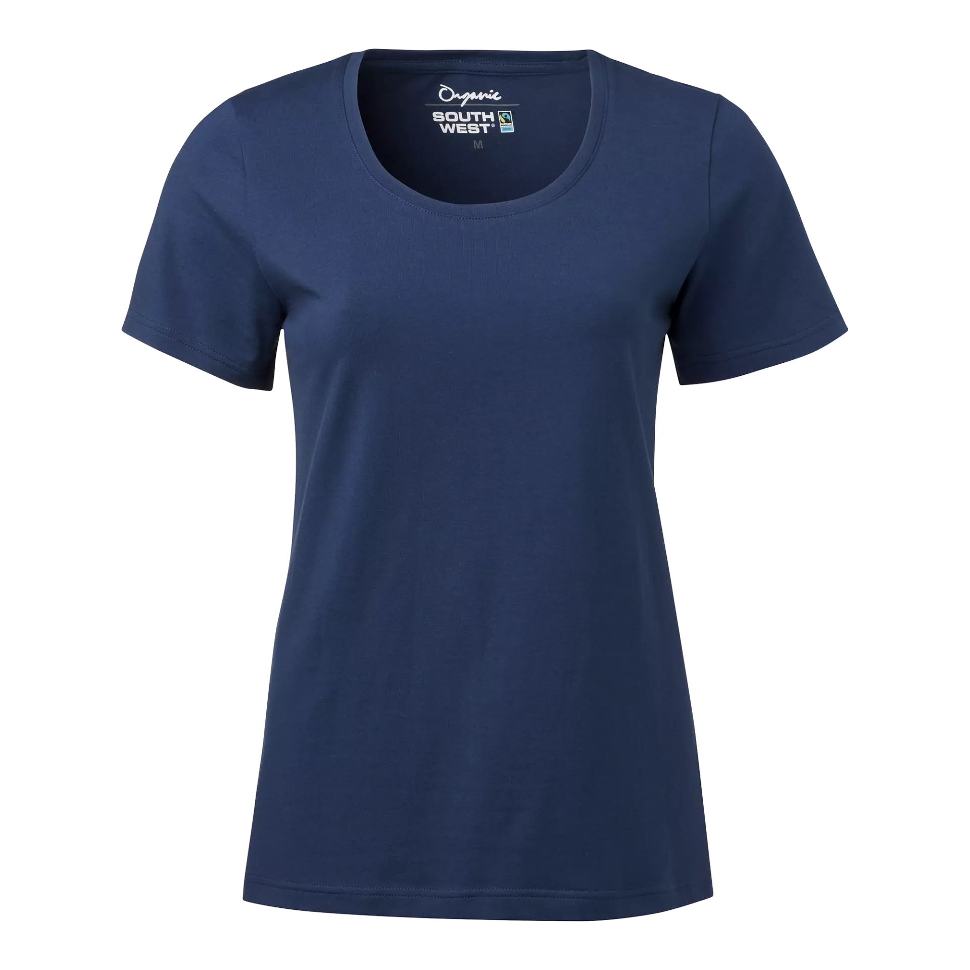 This women's T-shirt combines Fairtrade certified organic cotton with elastane for comfortable stretch and movement. Featuring a crew neck with narrow ribbed hem and slim fit design, it offers versatility for both professional and casual wear. The garment meets GOTS and OEKO-Tex standards, ensuring sustainable and responsible production practices.
