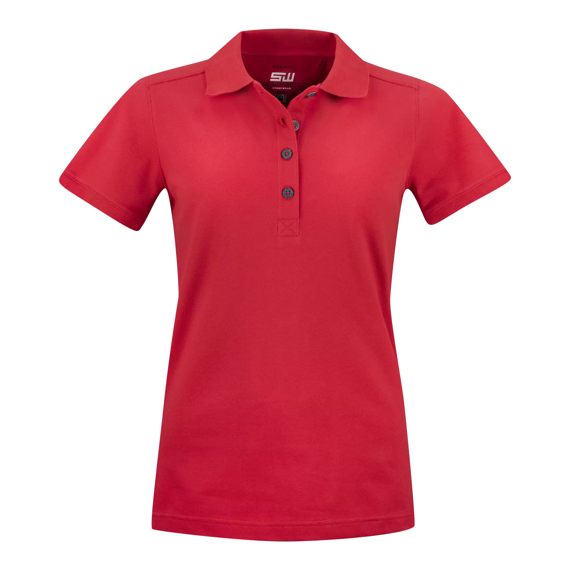 This organic cotton polo features GOTS certified Fairtrade cotton construction with modern women's fit and dropped shoulders. The garment incorporates sustainable design elements including buttons made from recycled scraps, flatlock stitching, and an ecolabeled internal neck print. With its longer placket and thoughtful construction details, this polo offers both environmental responsibility and professional versatility for work and leisure applications.