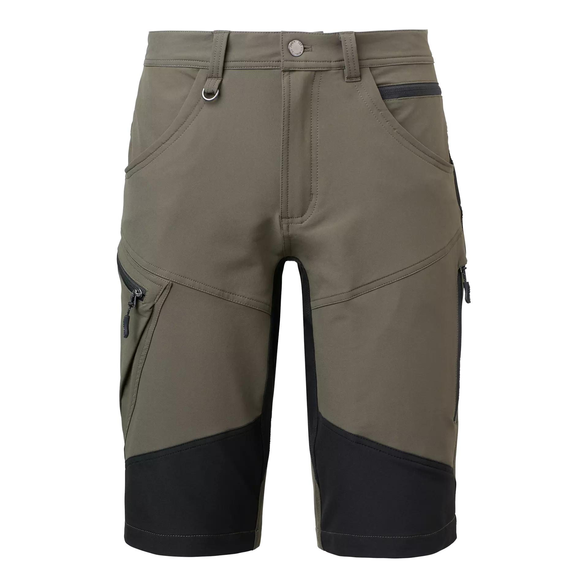 Hybrid shorts constructed from a stretchy nylon-spandex blend designed for optimal freedom of movement and comfort. The classic 5-pocket design features practical leg pockets and a back pocket, all equipped with zippers and reflective details for enhanced safety and security. These versatile shorts are suitable for both work environments and leisure activities.