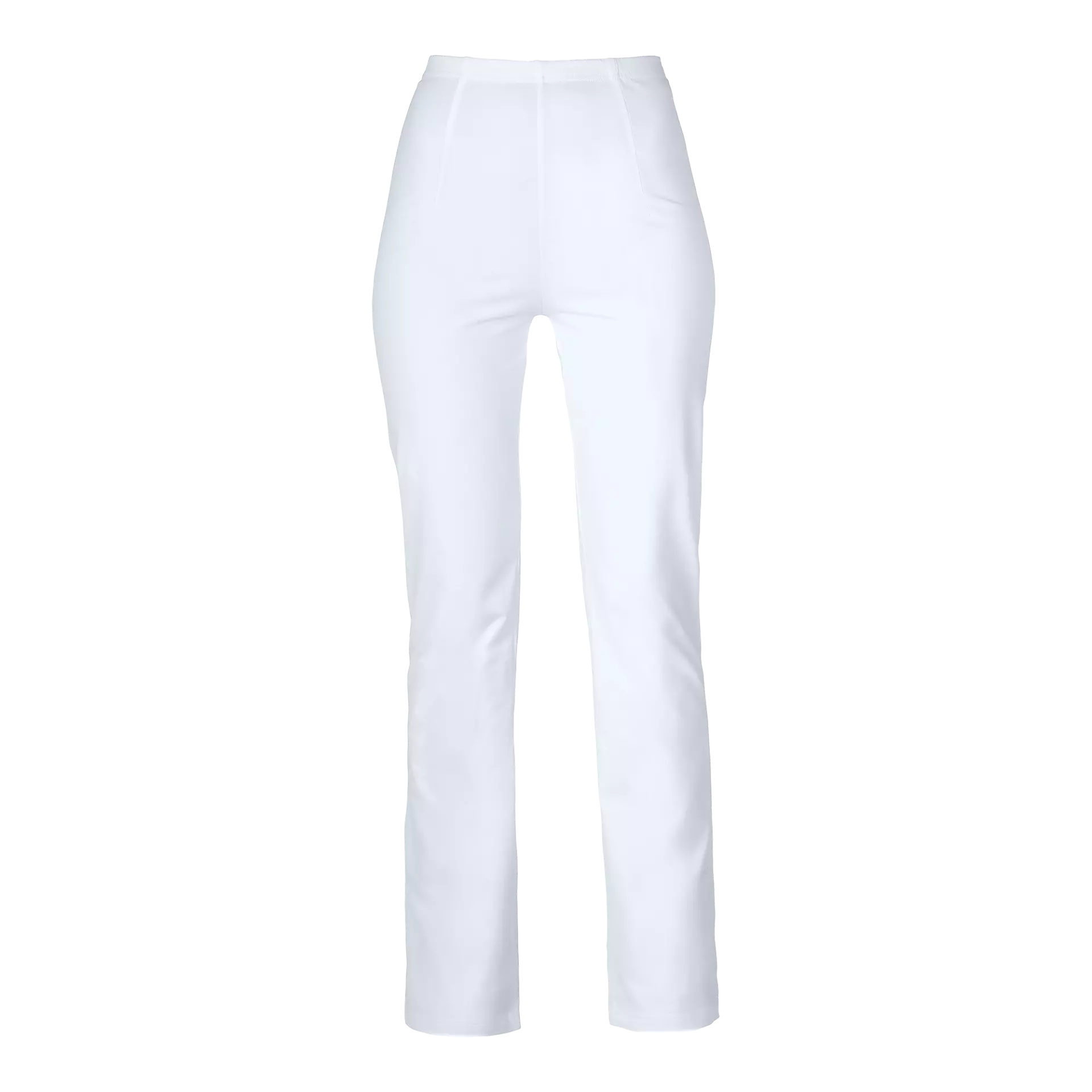 Supple jersey pants designed for women in the healthcare sector, featuring a soft feel with slightly flared leg ends and a higher waist design. The elastic waistband with inside drawstring provides a secure and comfortable fit throughout the working day. These leggings combine functionality and comfort while maintaining a professional appearance, constructed from a durable fabric blend certified to OEKO-Tex standards.