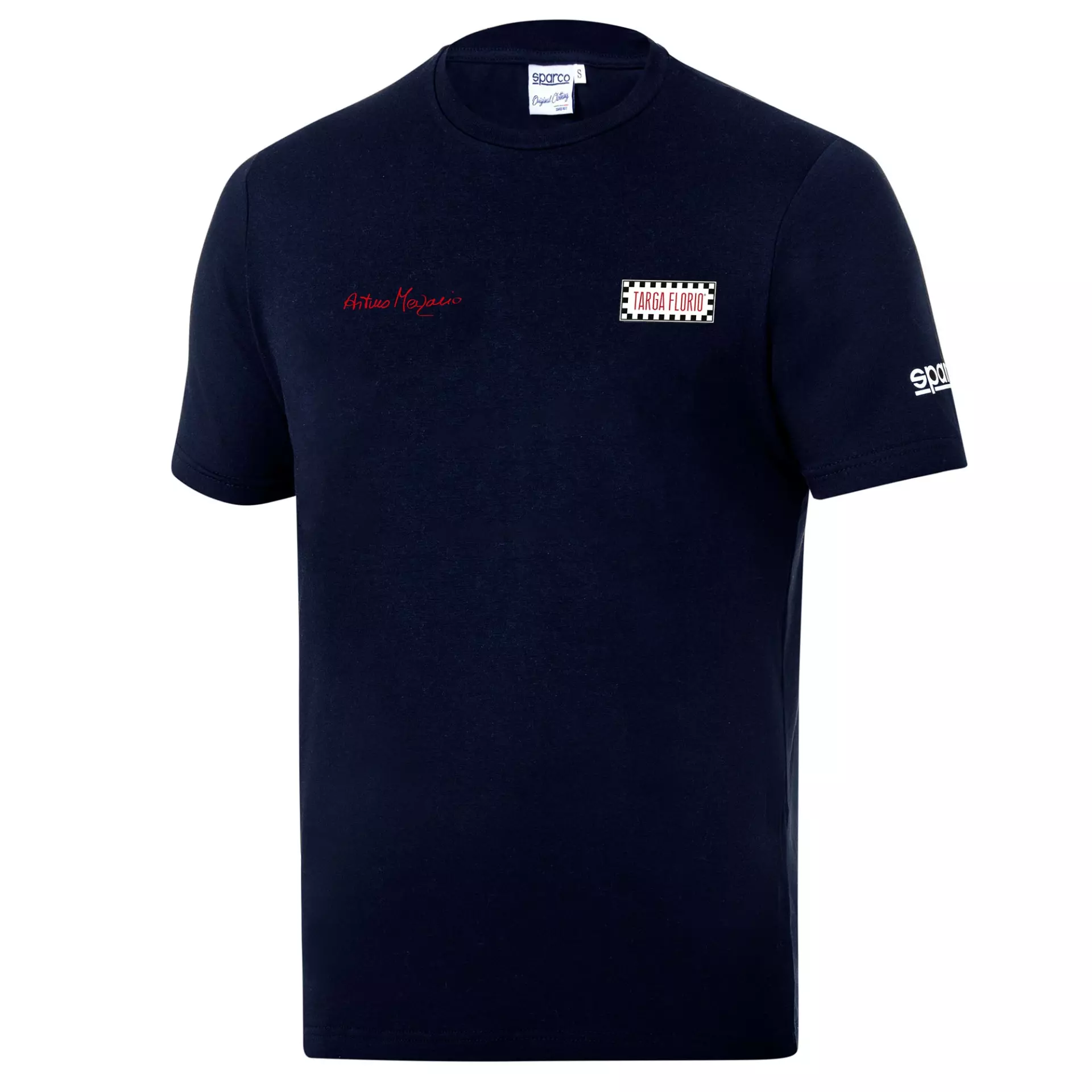 This customized t-shirt features TARGA FLORIO-ARTURO MERZARIO branding and is manufactured in Italy. The garment combines cotton comfort with elastane stretch for improved fit and flexibility.