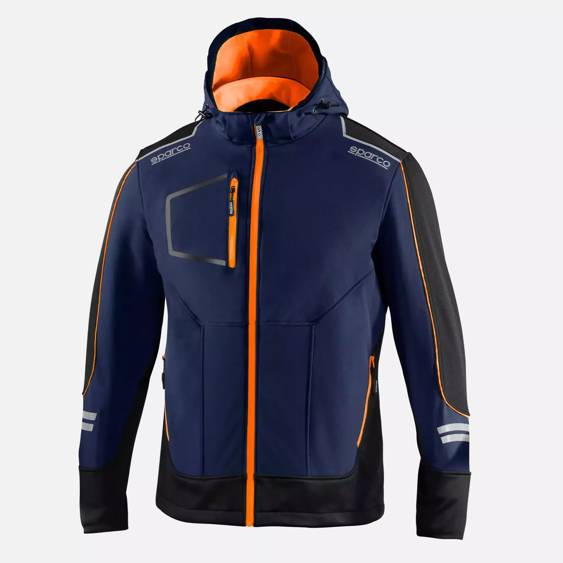 This technical soft-shell jacket combines durability with functionality, featuring a sophisticated three-layer construction with polyester-spandex outer shell and polar fleece interior. The strategic reinforcement inserts provide enhanced durability in high-wear areas, while the reflective strips ensure visibility in low-light conditions. The versatile design includes a practical removable hood system and comfortable elasticated cuffs for optimal fit and protection.