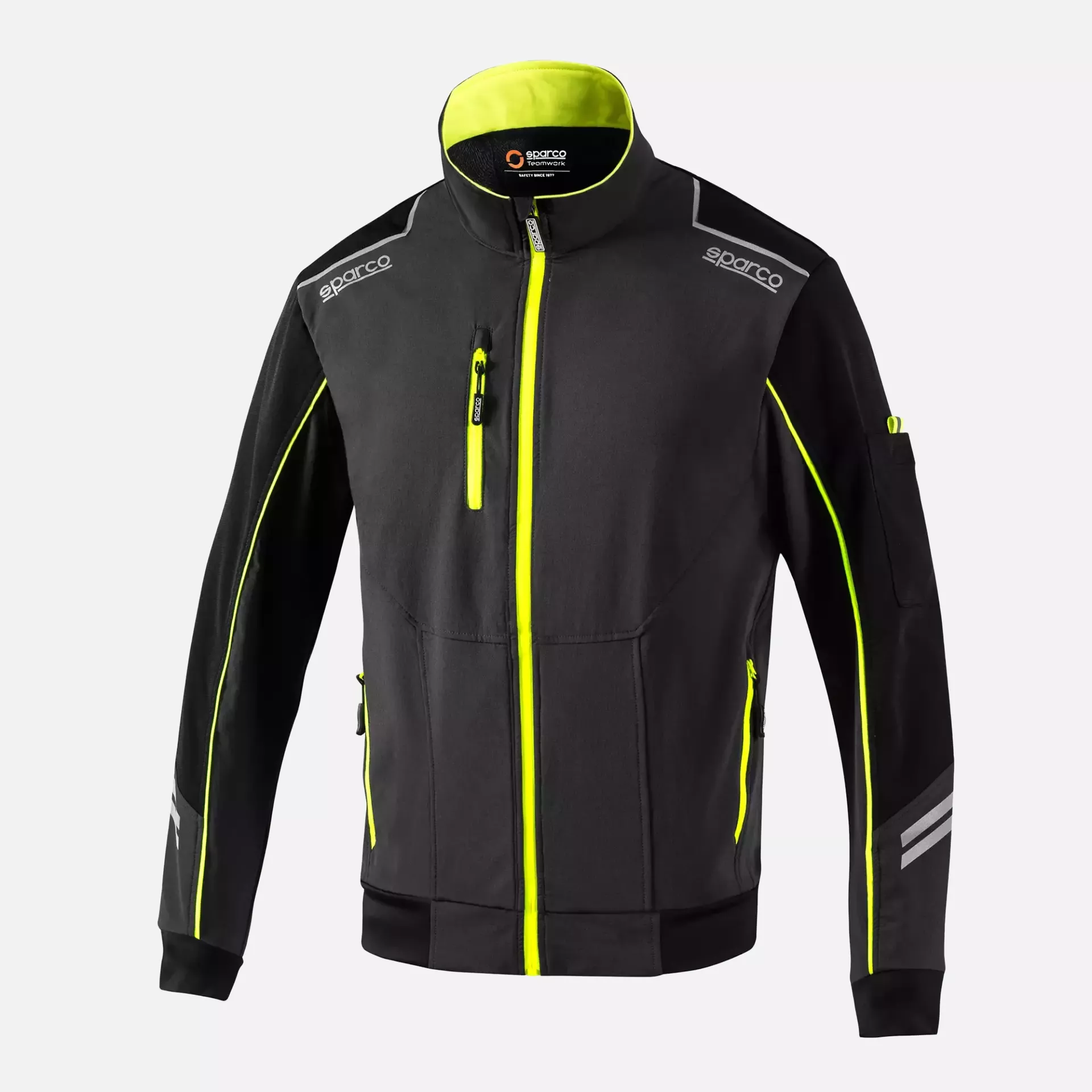 The Austin Tech softshell jacket combines durability with flexibility through its premium nylon-spandex blend construction. This technical shell garment features reinforced sleeves with anti-abrasion protection and high-visibility elements for enhanced safety. The waterproof central zip and specialized sleeve pocket design ensure both protection from the elements and practical functionality.